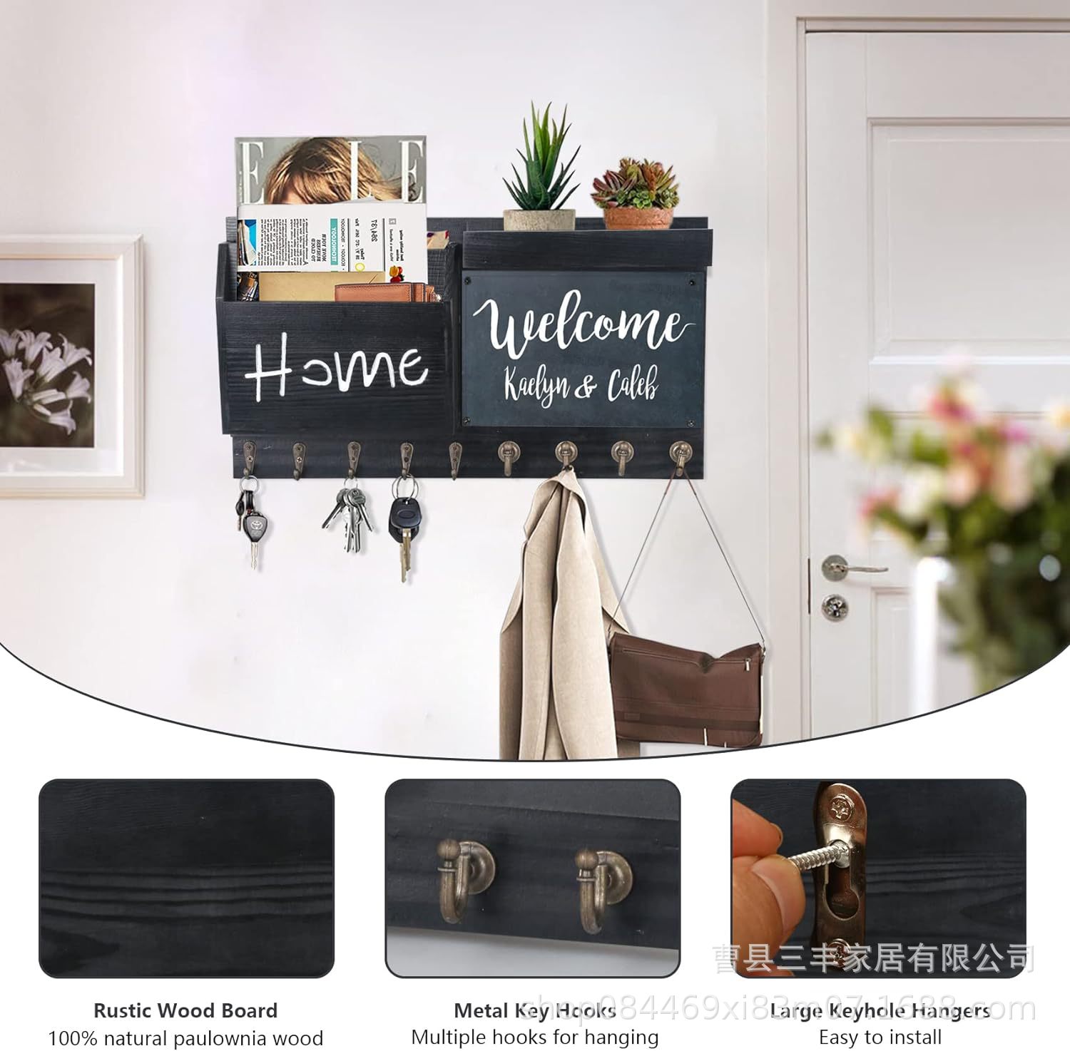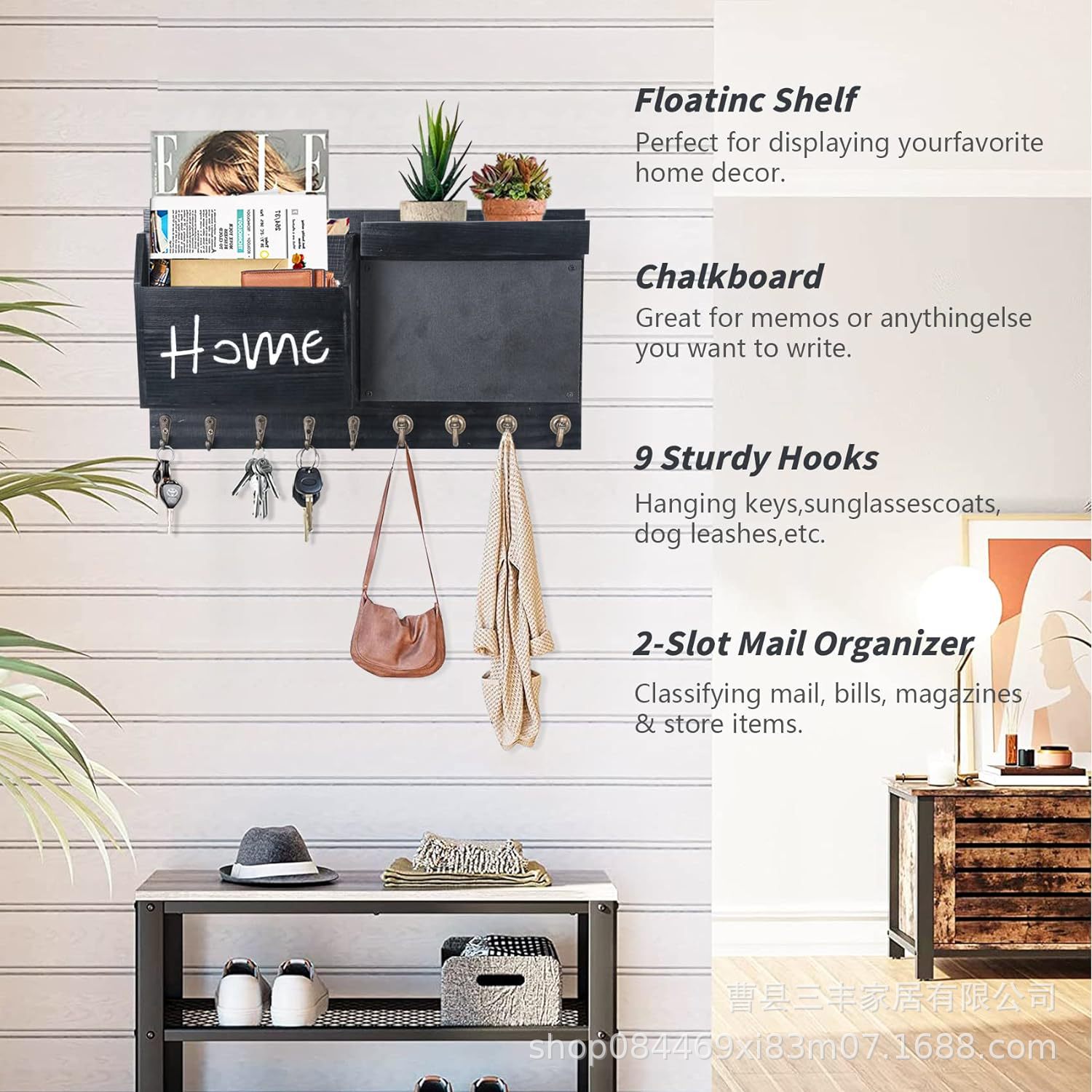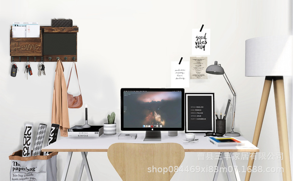 작은 칠판 편지 보관 랙 베란다 벽걸이 후크 코트와 모자 랙이있는 국경 간 나무 우편 키 랙스토어 가기