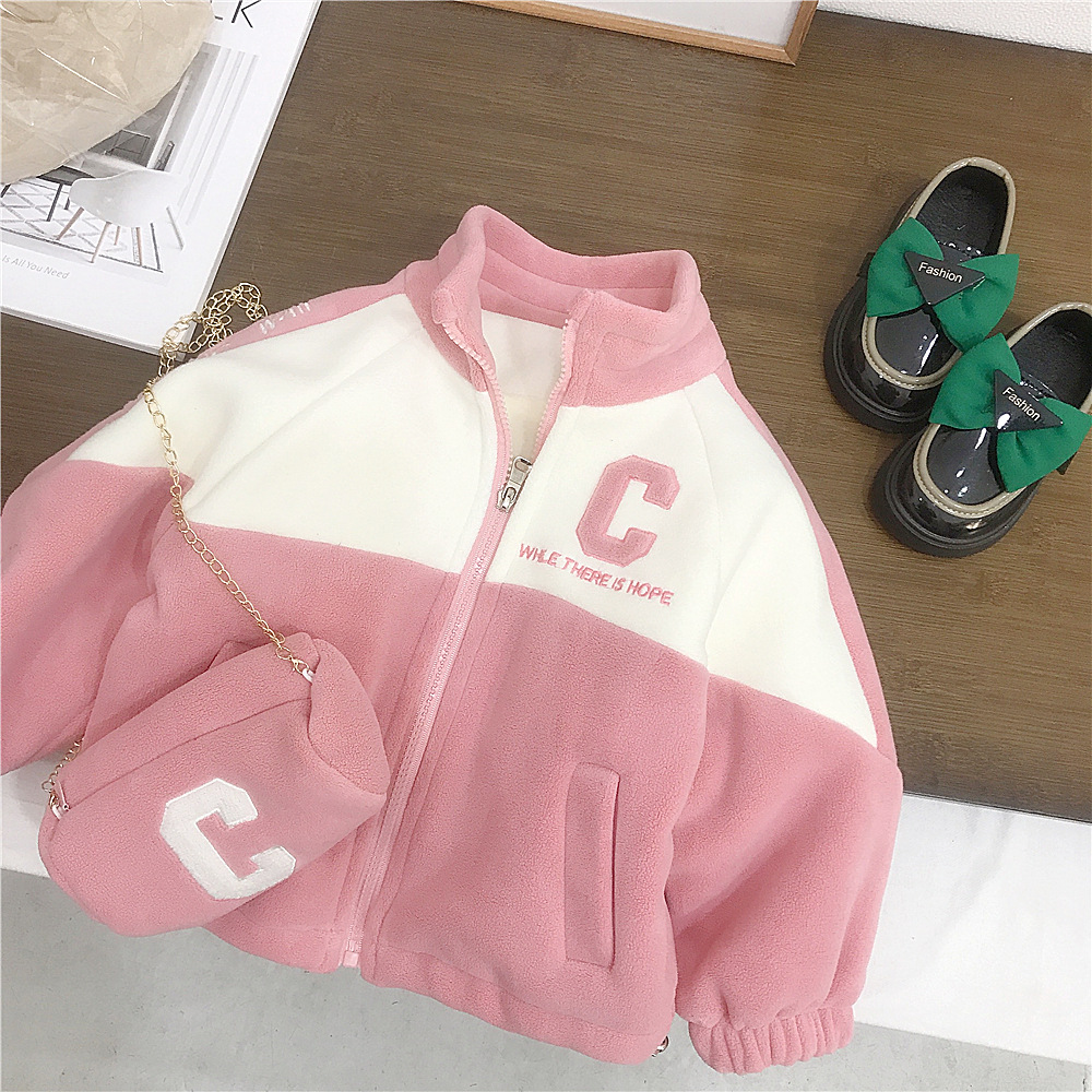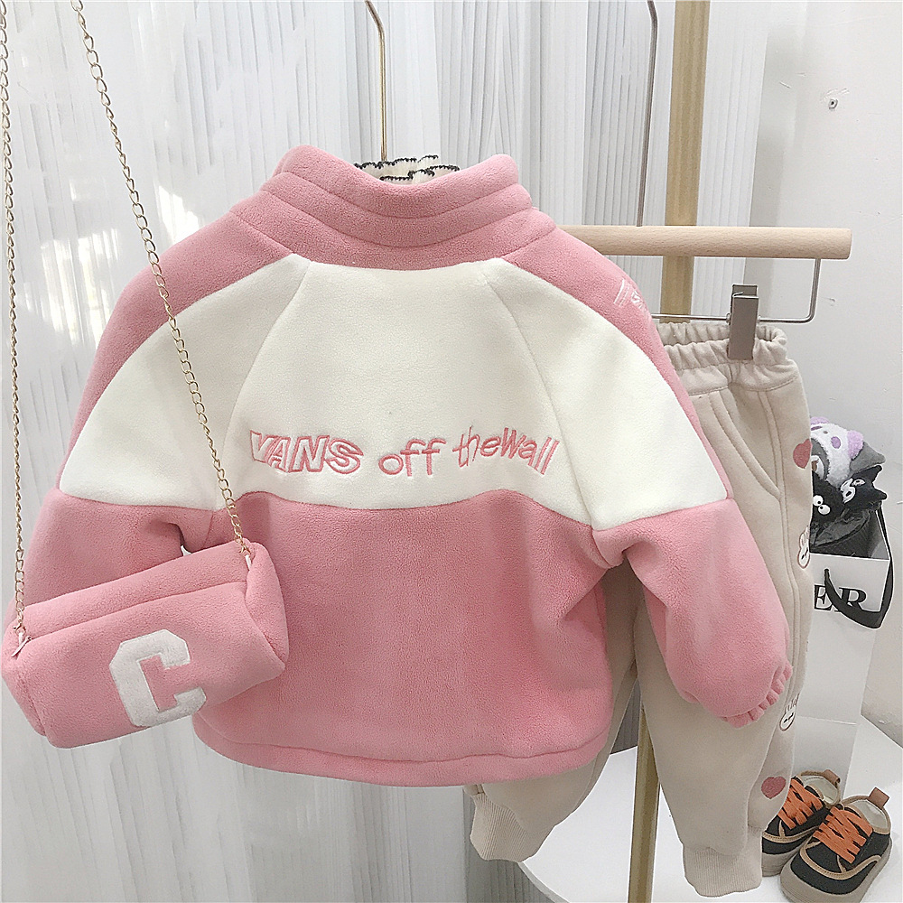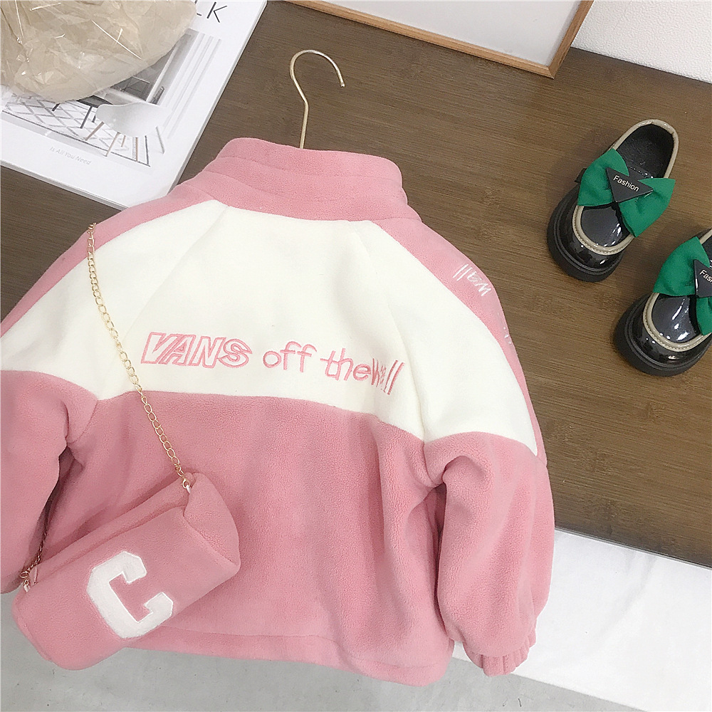 여자의 외투 가을과 겨울 새로운 아이들의 수직 칼라 기모 두꺼운 바느질 겨울 아기 여자의 최고 가방 대외 무역스토어 가기