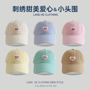 甜美风~潮春夏百搭三色刺绣爱心男女儿童棒球帽遮阳防晒鸭舌帽子