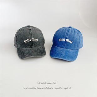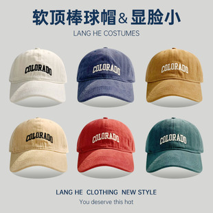 字母压胶棒球帽女款韩国ins水洗棉复古软顶休闲百搭男士鸭舌帽子