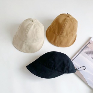 儿童软顶棉质纯色秋冬帽子夏季防晒帽抽绳韩版休闲百搭小童渔夫帽