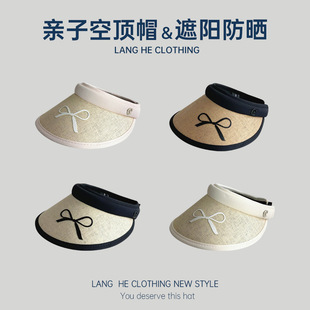 黑胶空顶草帽女蝴蝶结韩版可爱夏季出游休闲无顶大檐防晒遮阳帽子