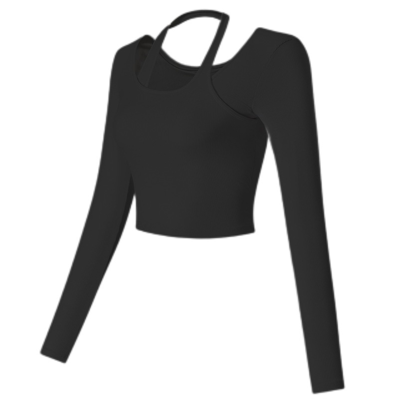 가슴 매트가있는 빠른 목 요가 의류 여성의 섹시한 인터넷 인기있는 가을과 겨울 피트니스 탑 짧은 달리기 스포츠 긴 소매 새로운스토어 가기