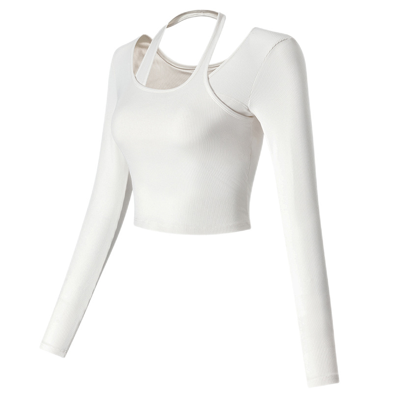 가슴 매트가있는 빠른 목 요가 의류 여성의 섹시한 인터넷 인기있는 가을과 겨울 피트니스 탑 짧은 달리기 스포츠 긴 소매 새로운