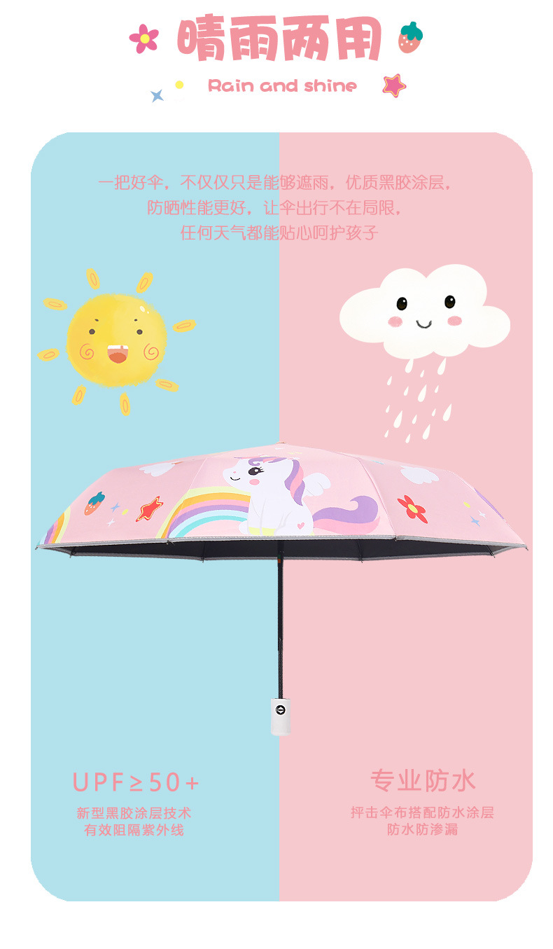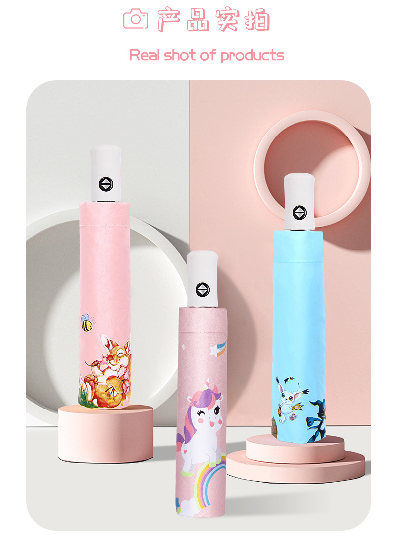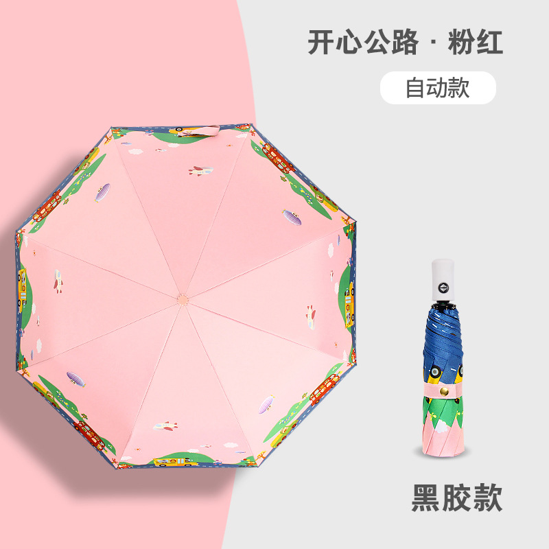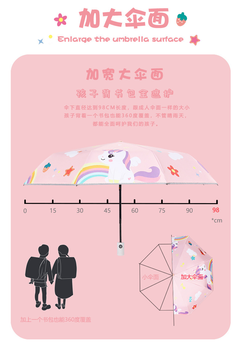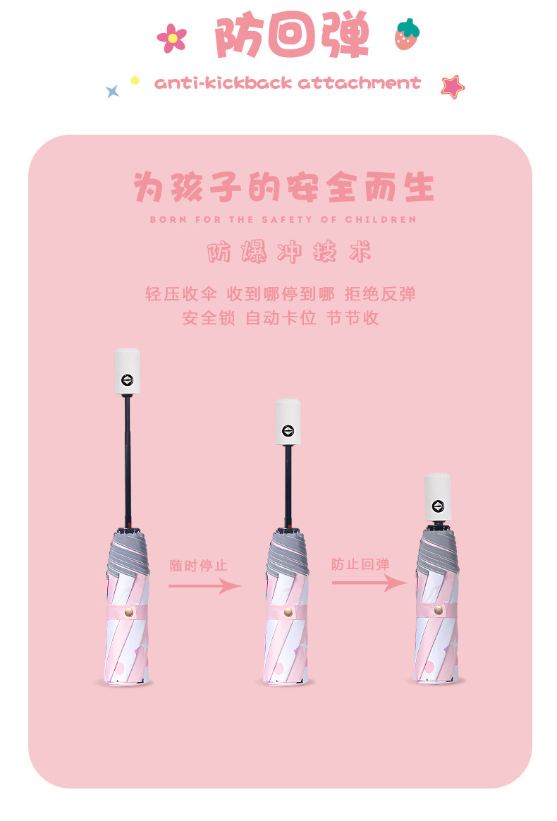 초등학생용 접이식 자동 어린이 우산, 비 오는 날과 맑은 날 모두 사용 가능, 여아 및 남아용, 블랙코팅 자외선 차단스토어 가기