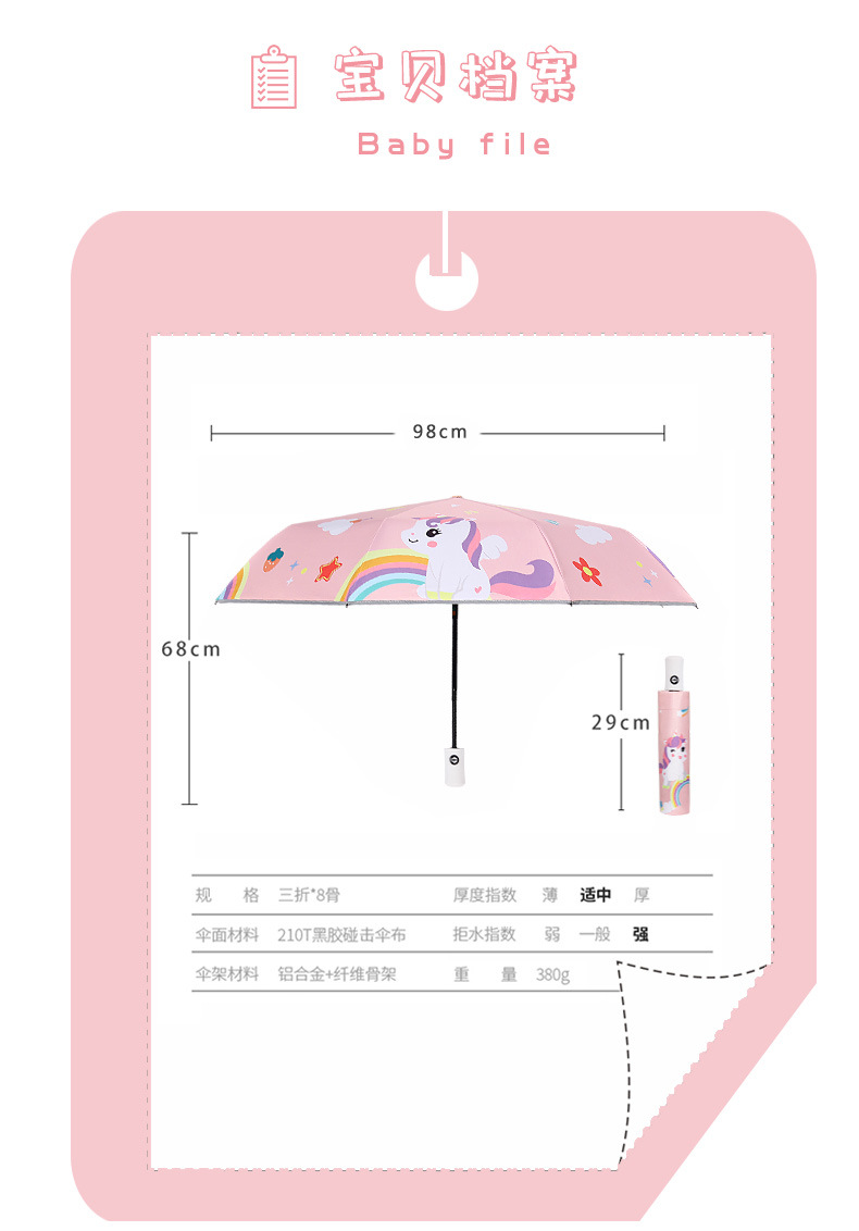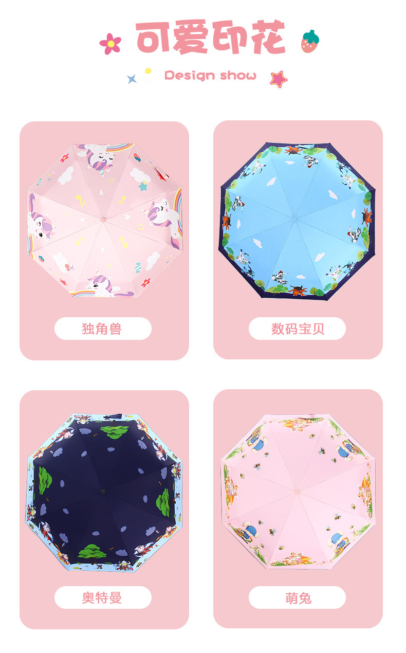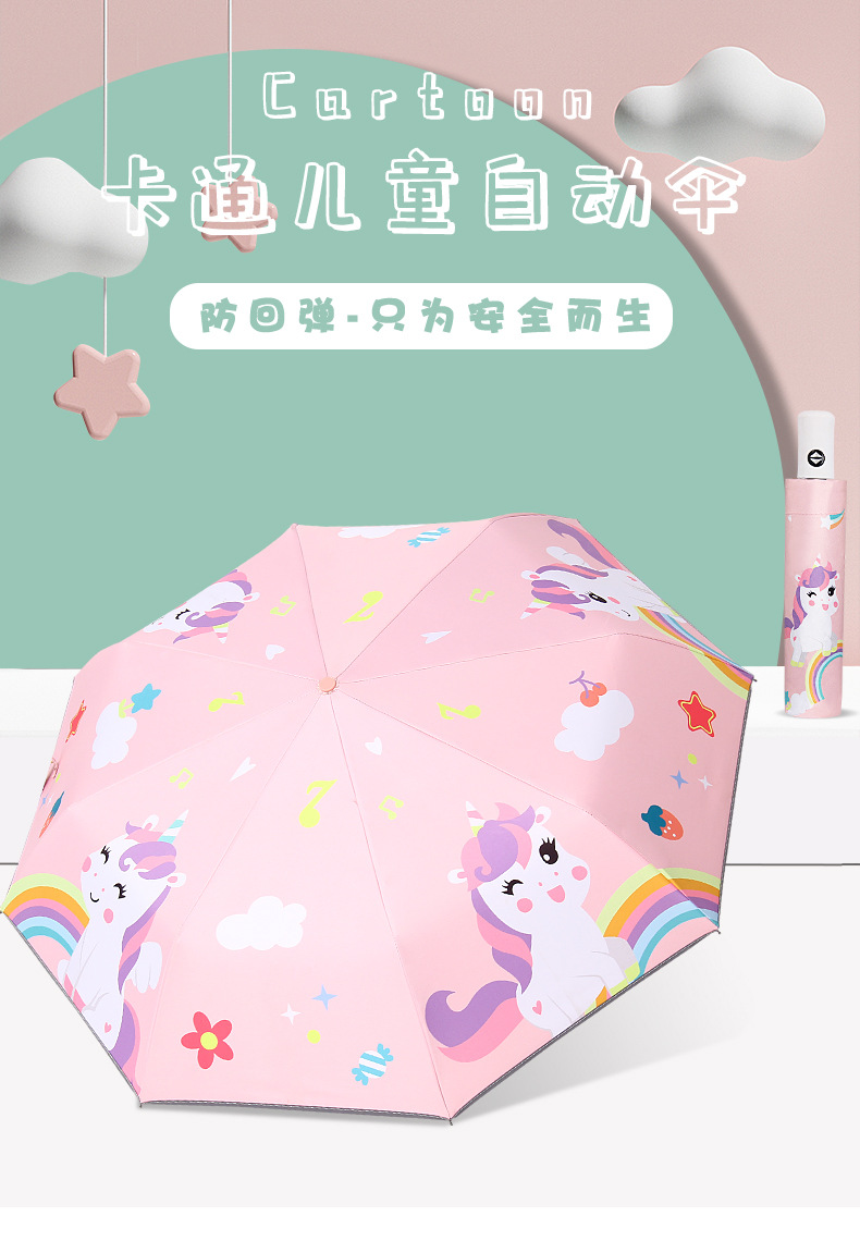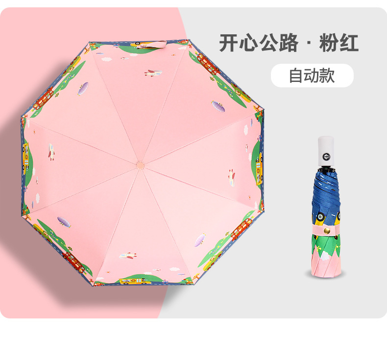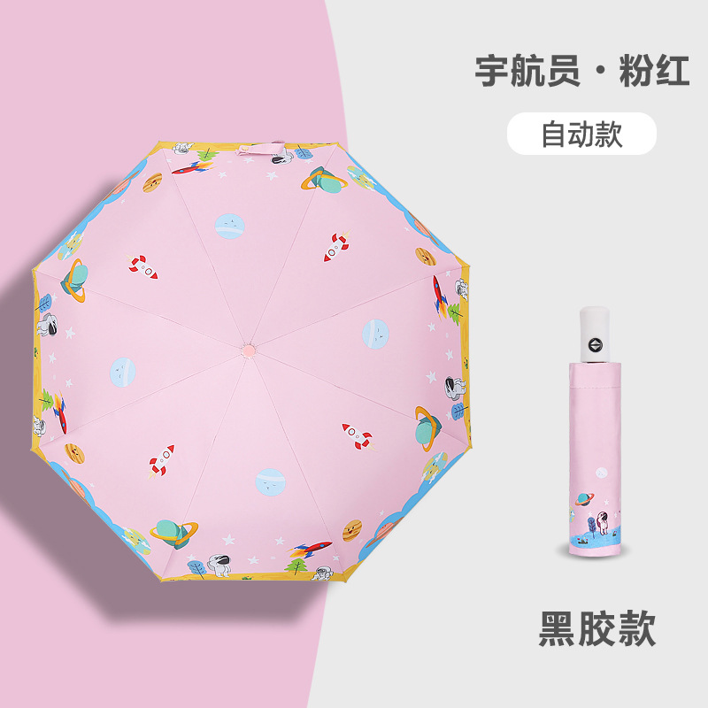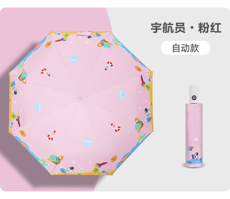초등학생용 접이식 자동 어린이 우산, 비 오는 날과 맑은 날 모두 사용 가능, 여아 및 남아용, 블랙코팅 자외선 차단스토어 가기