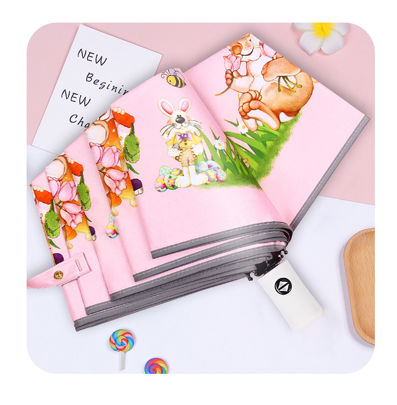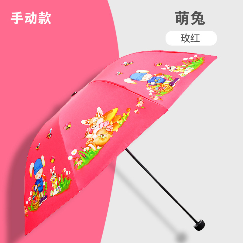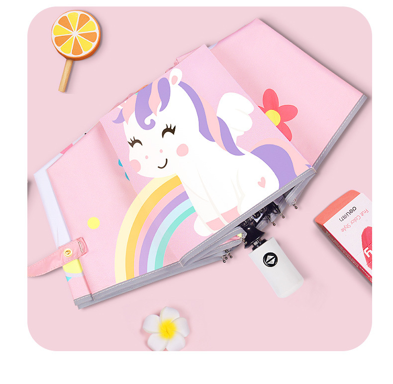 초등학생용 접이식 자동 어린이 우산, 비 오는 날과 맑은 날 모두 사용 가능, 여아 및 남아용, 블랙코팅 자외선 차단