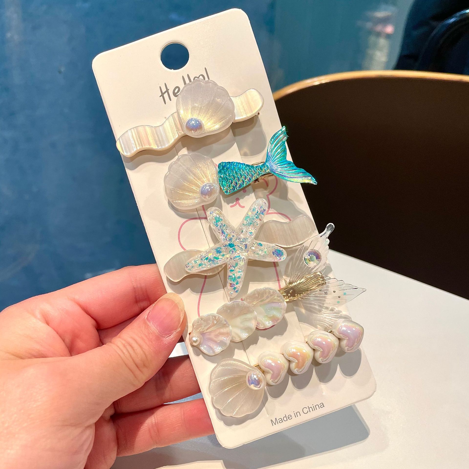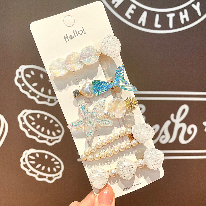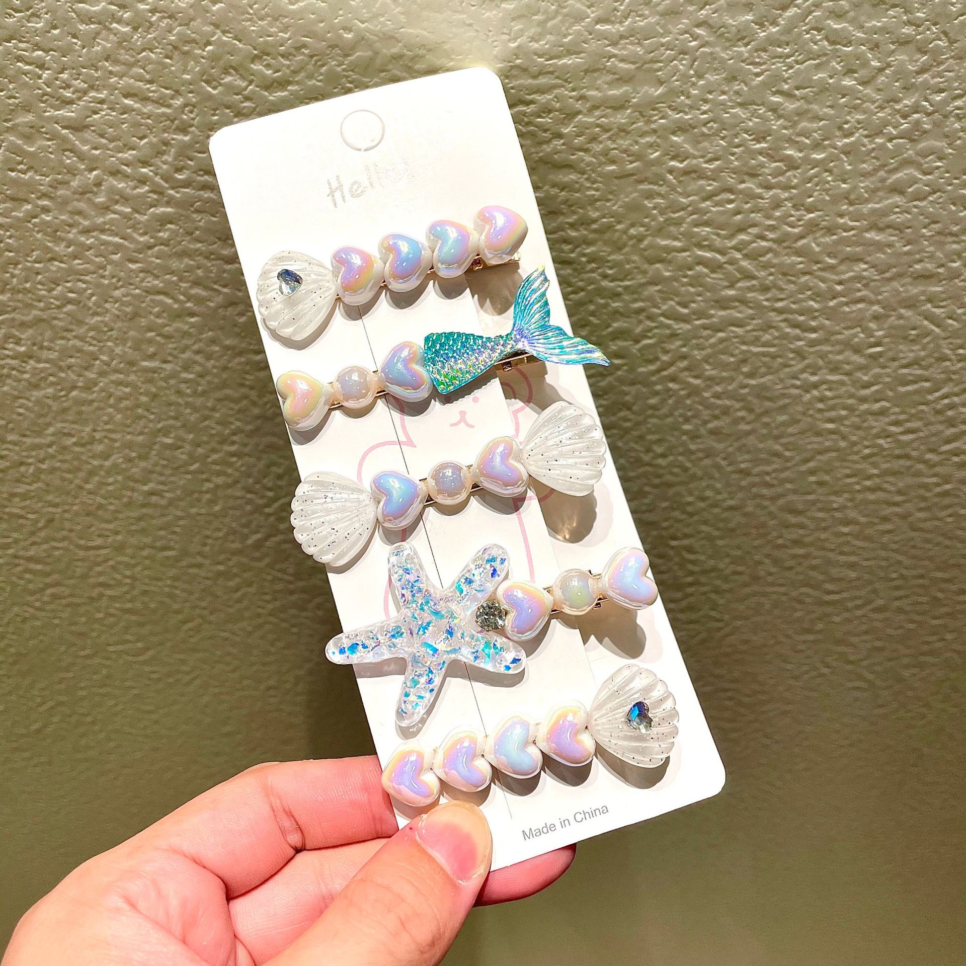 • 흰색 불가사리 인어 머리핀 5 세트 (카드 포함)