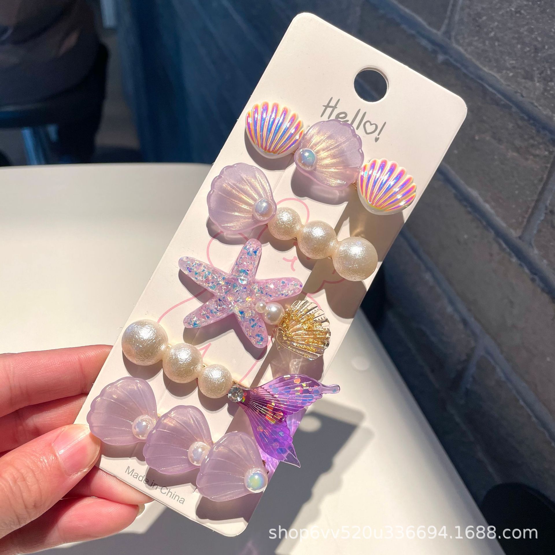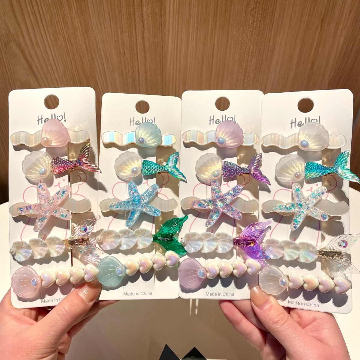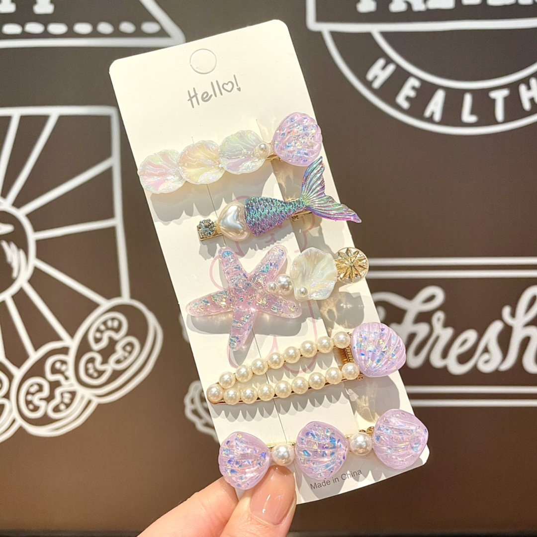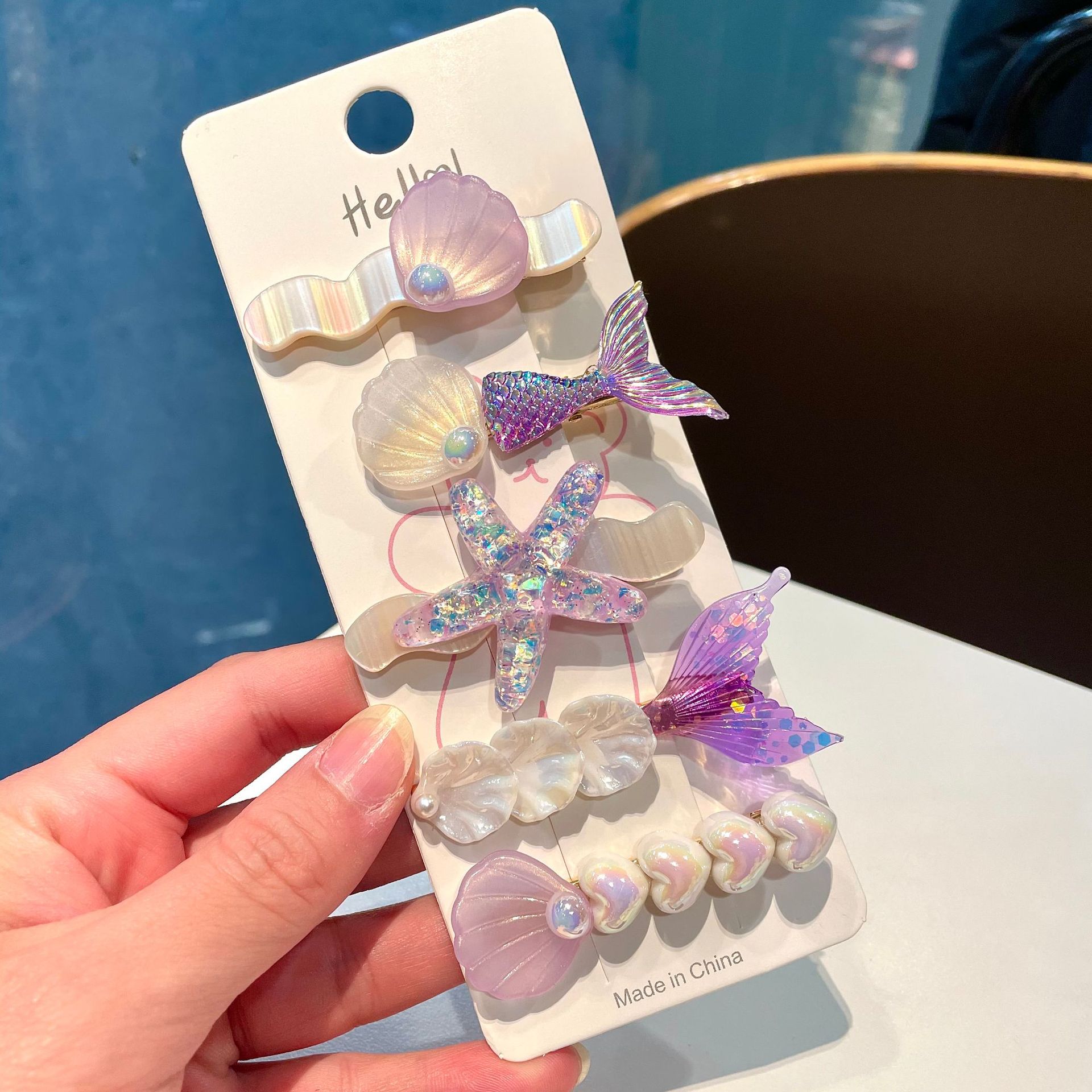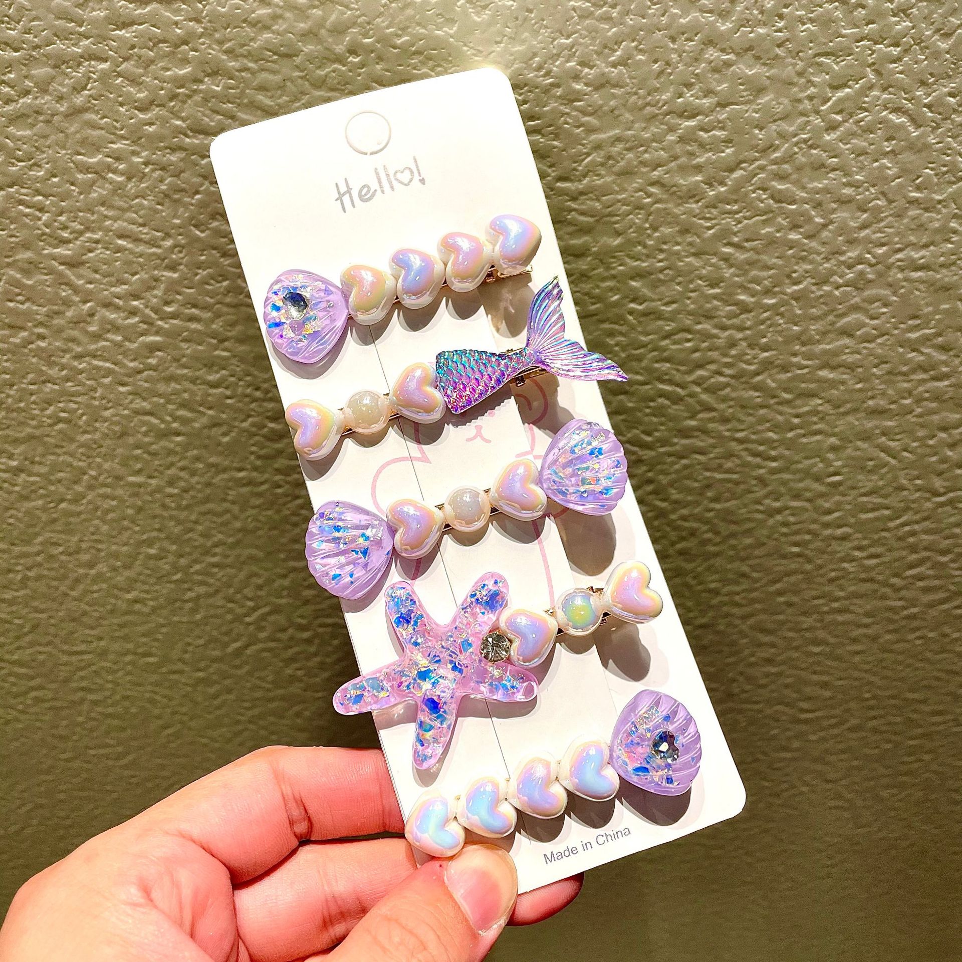 • 라이트 퍼플 불가사리 인어 머리핀 5 피스 세트 (카드 포함)
