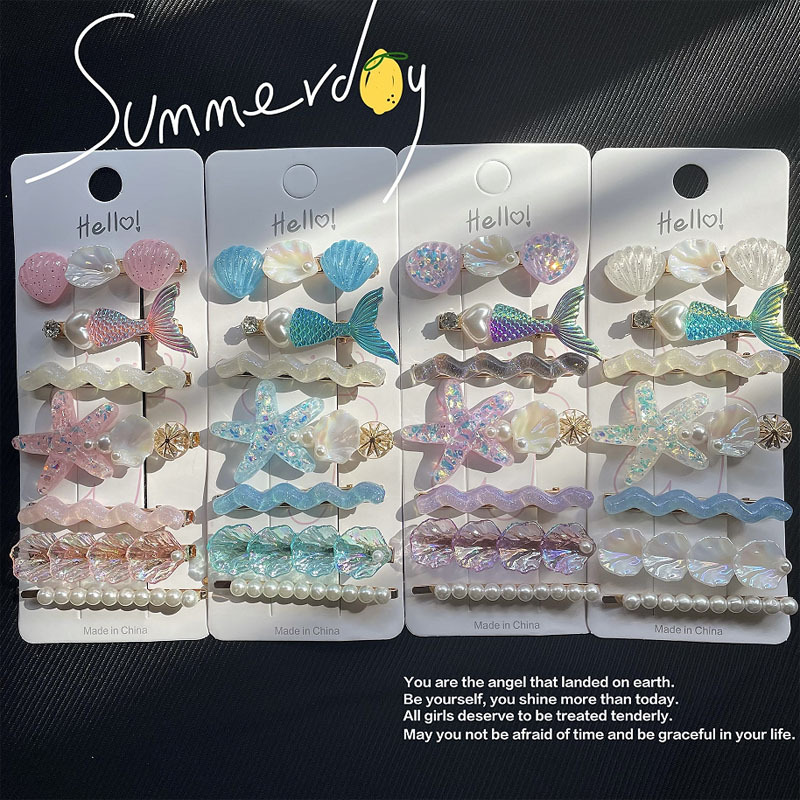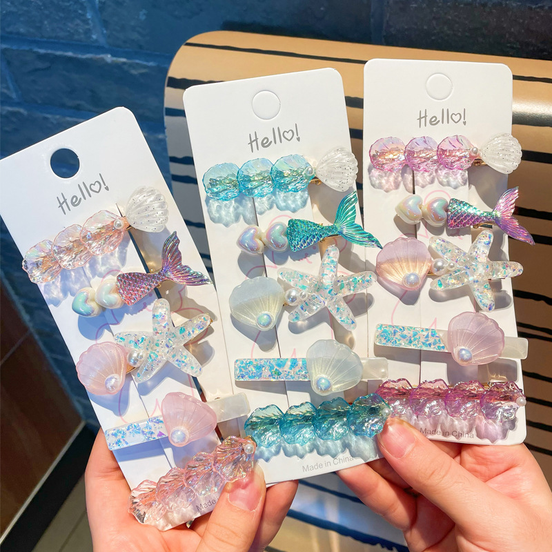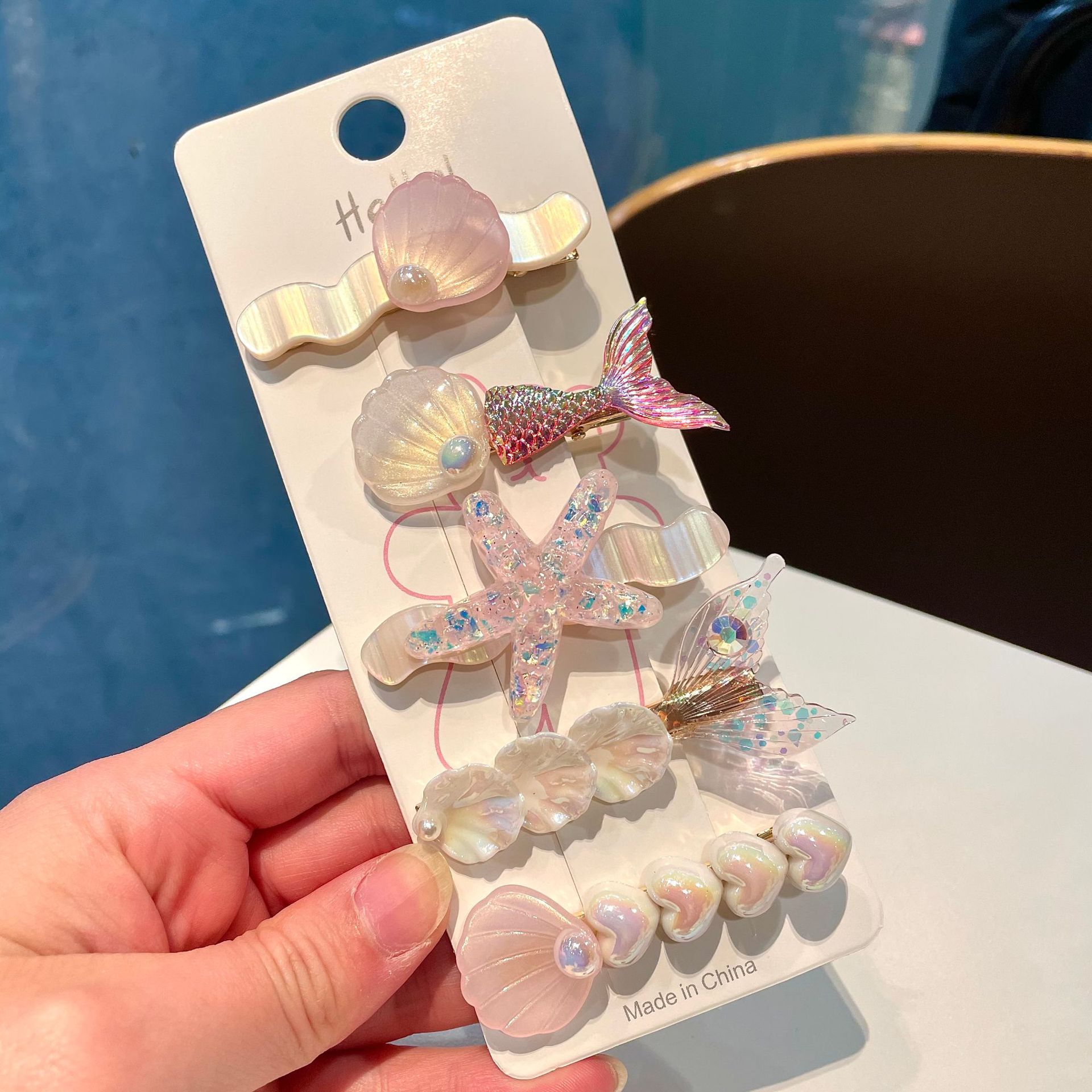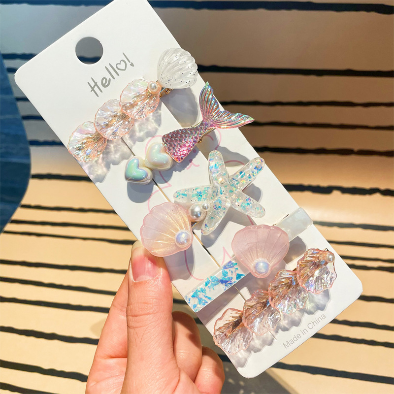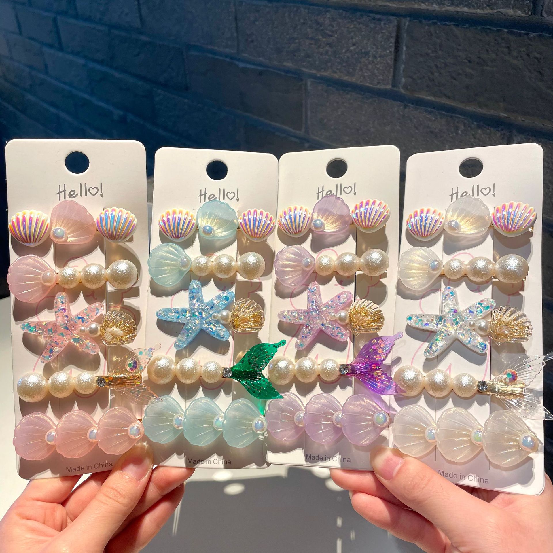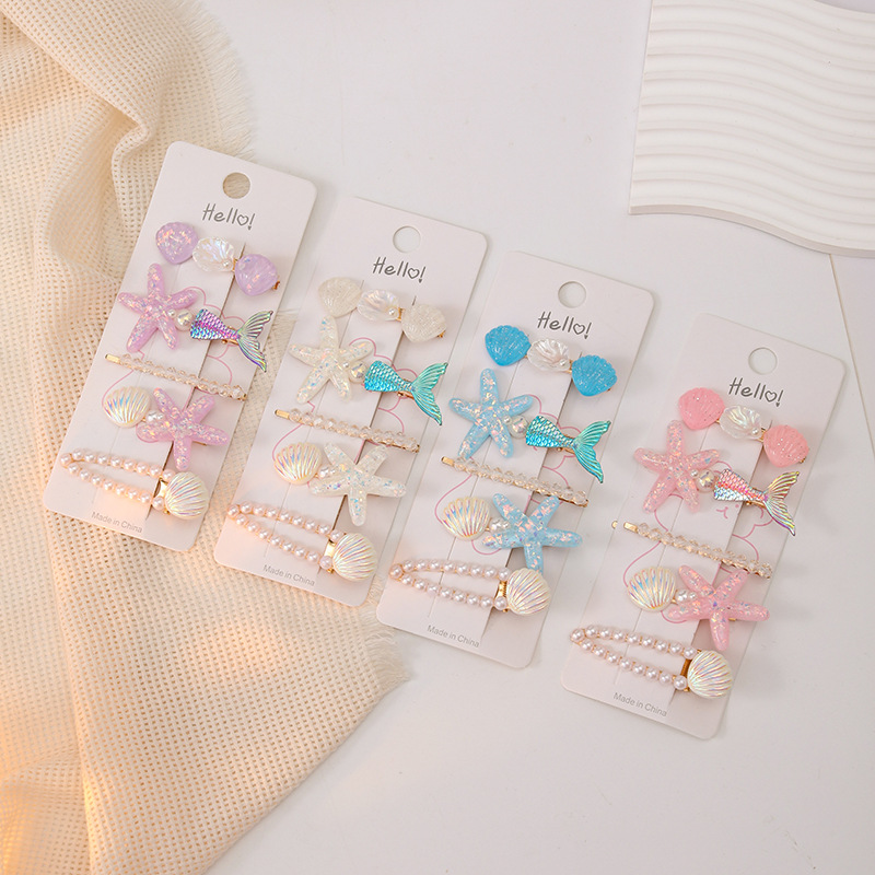 • 라이트 퍼플 불가사리 인어 머리핀 5 피스 세트 (카드 포함)