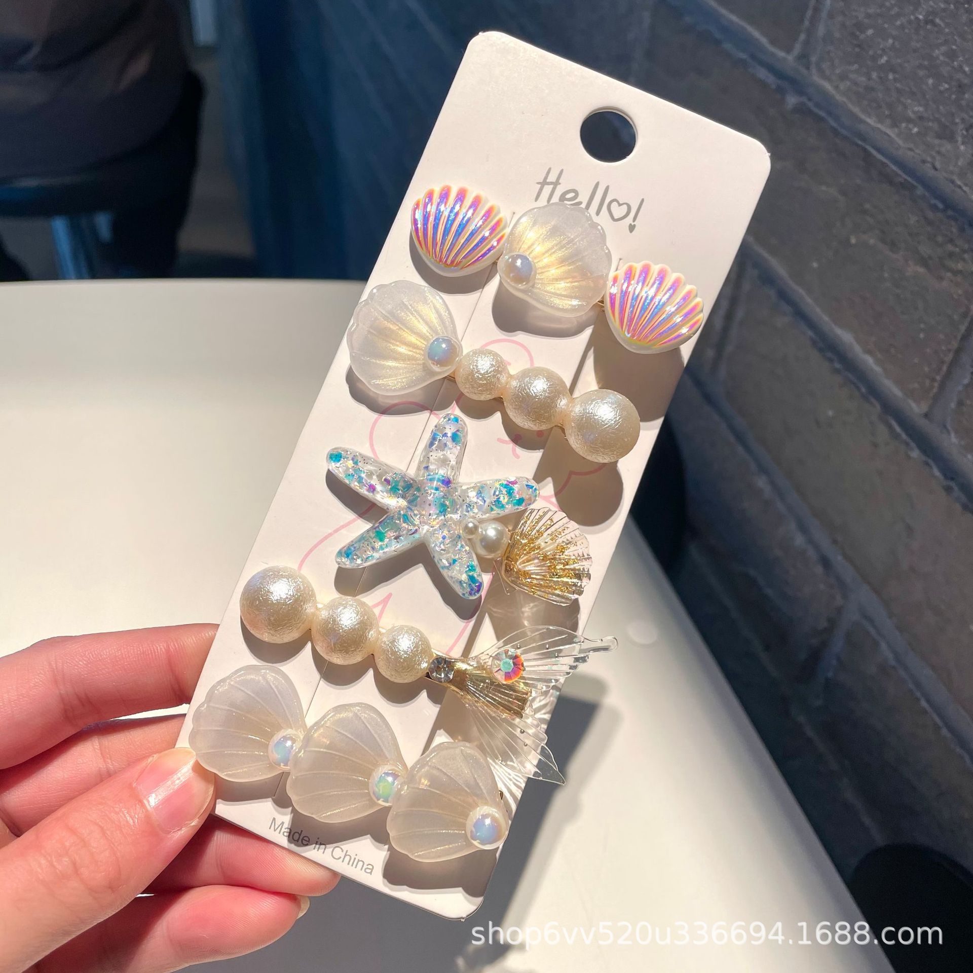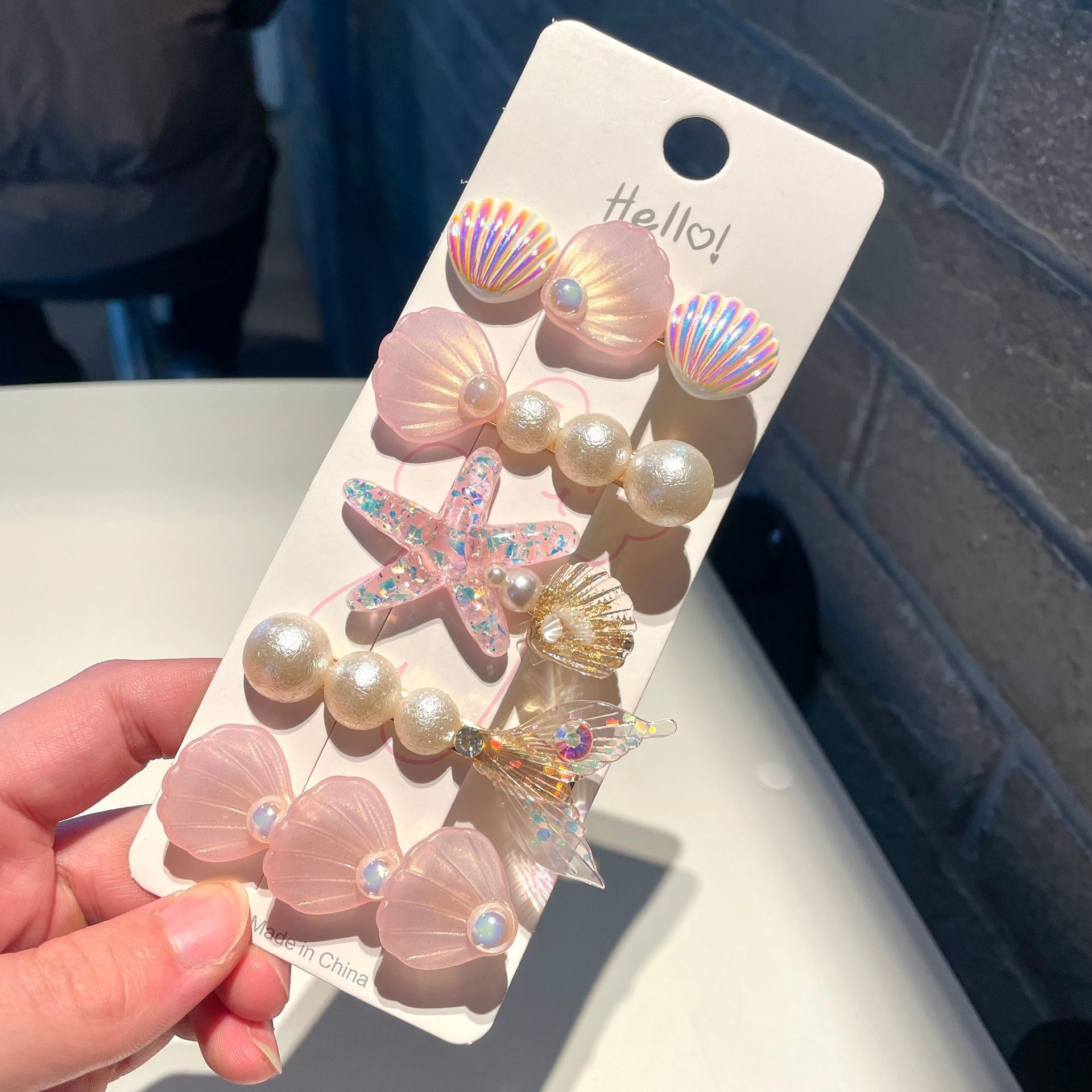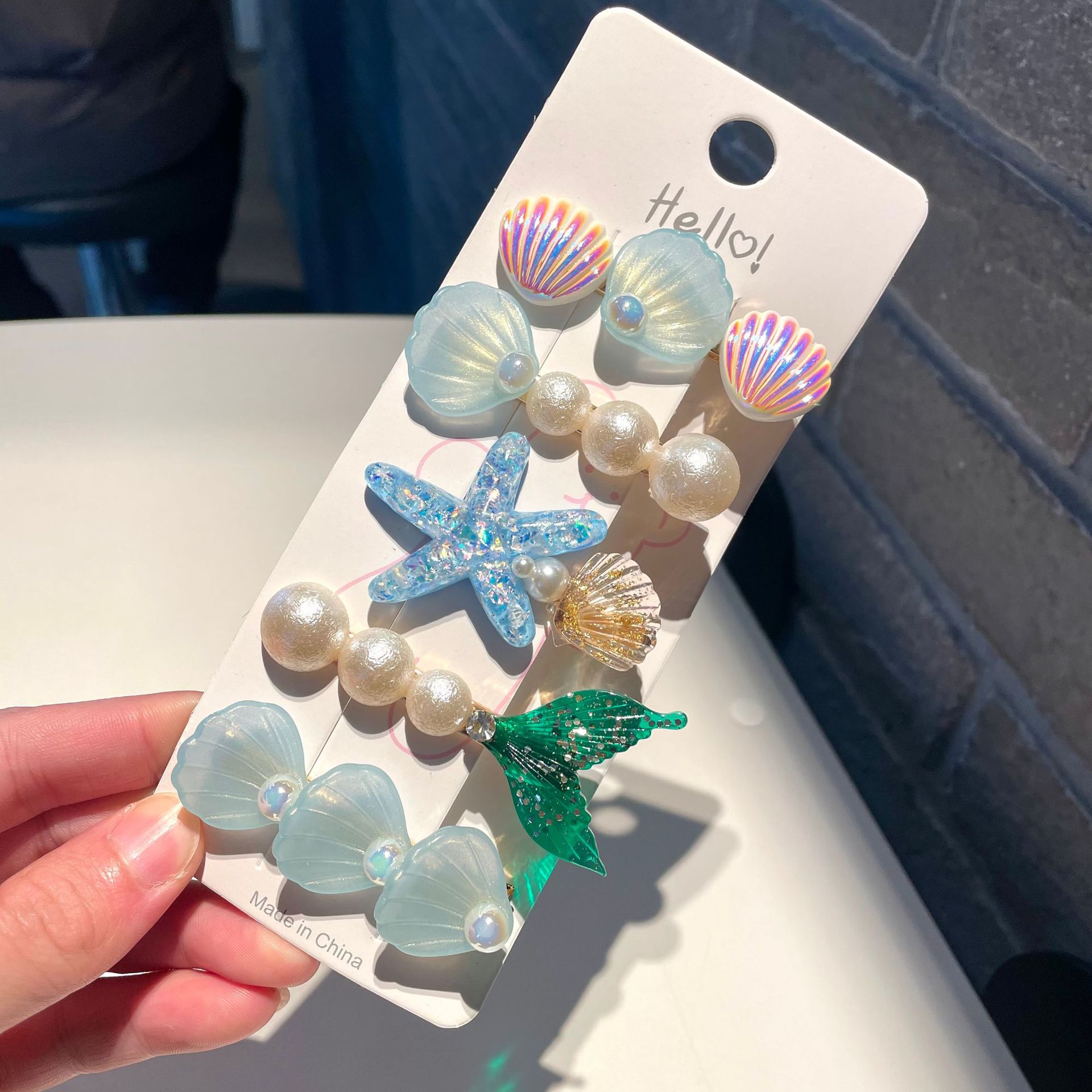 귀여운 바다 공주 불가사리 쉘 머리핀 어린이 머리핀 클립 진주 Duckbill 클립 헤어 액세서리 머리 장식 도매 여성
