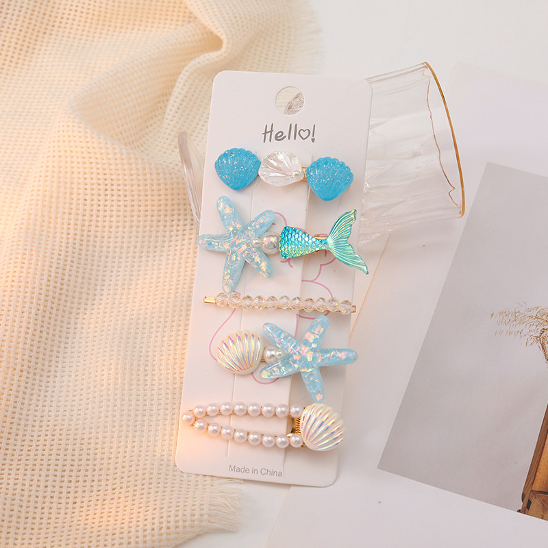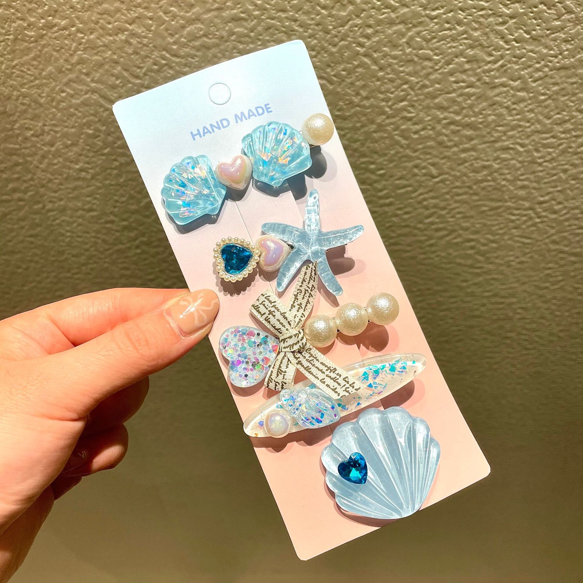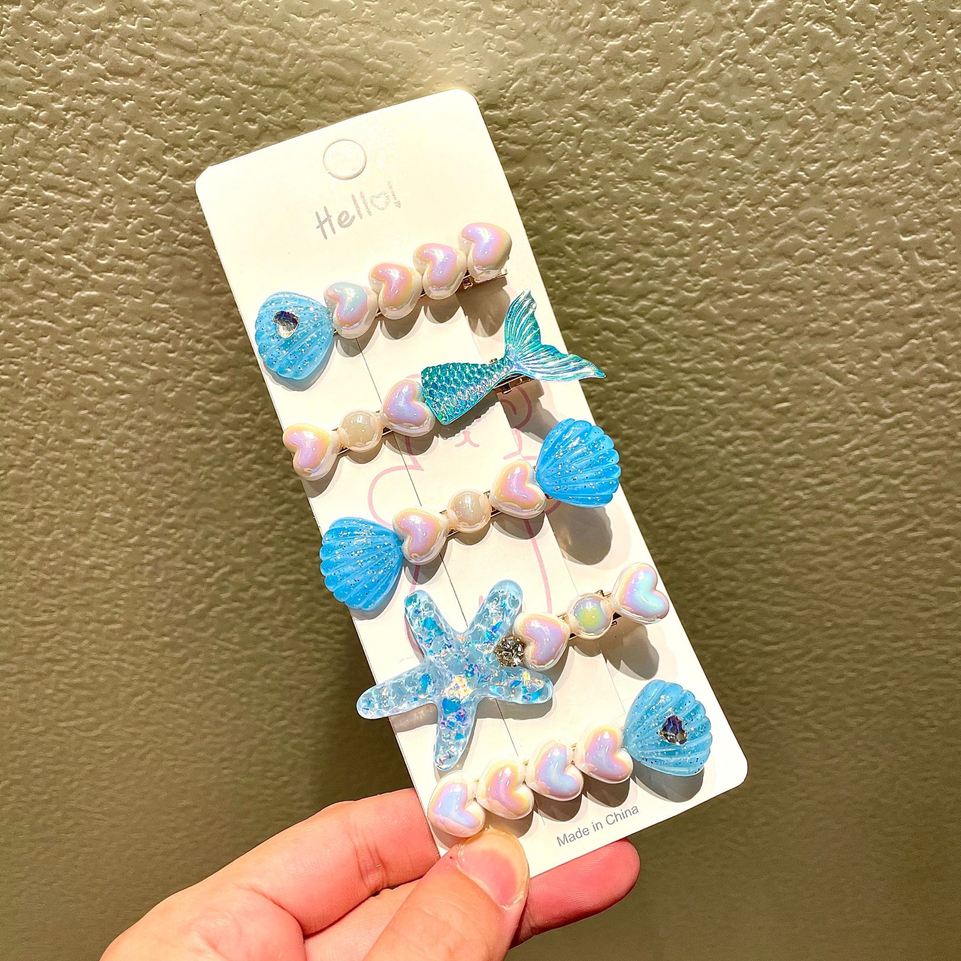 • 하늘색 불가사리 인어 머리핀 5 세트 (카드 포함)
