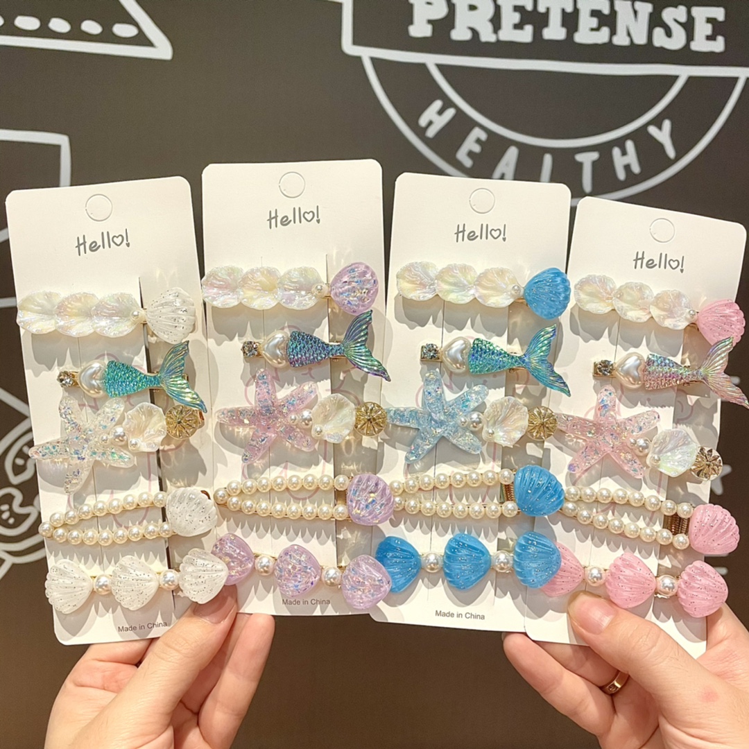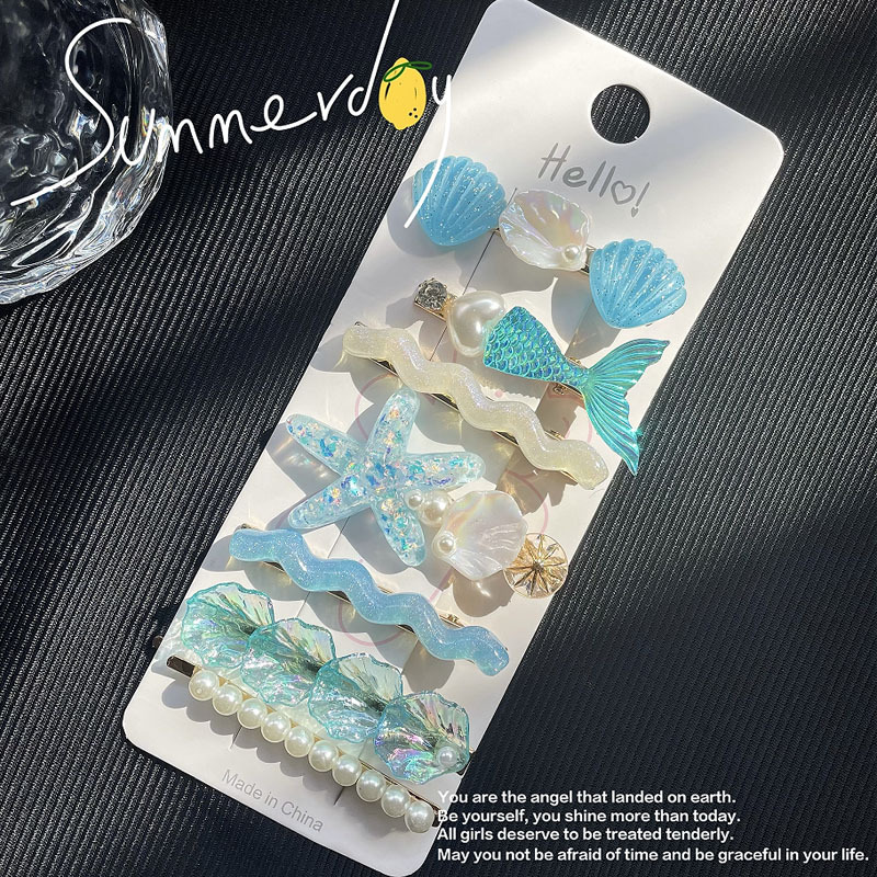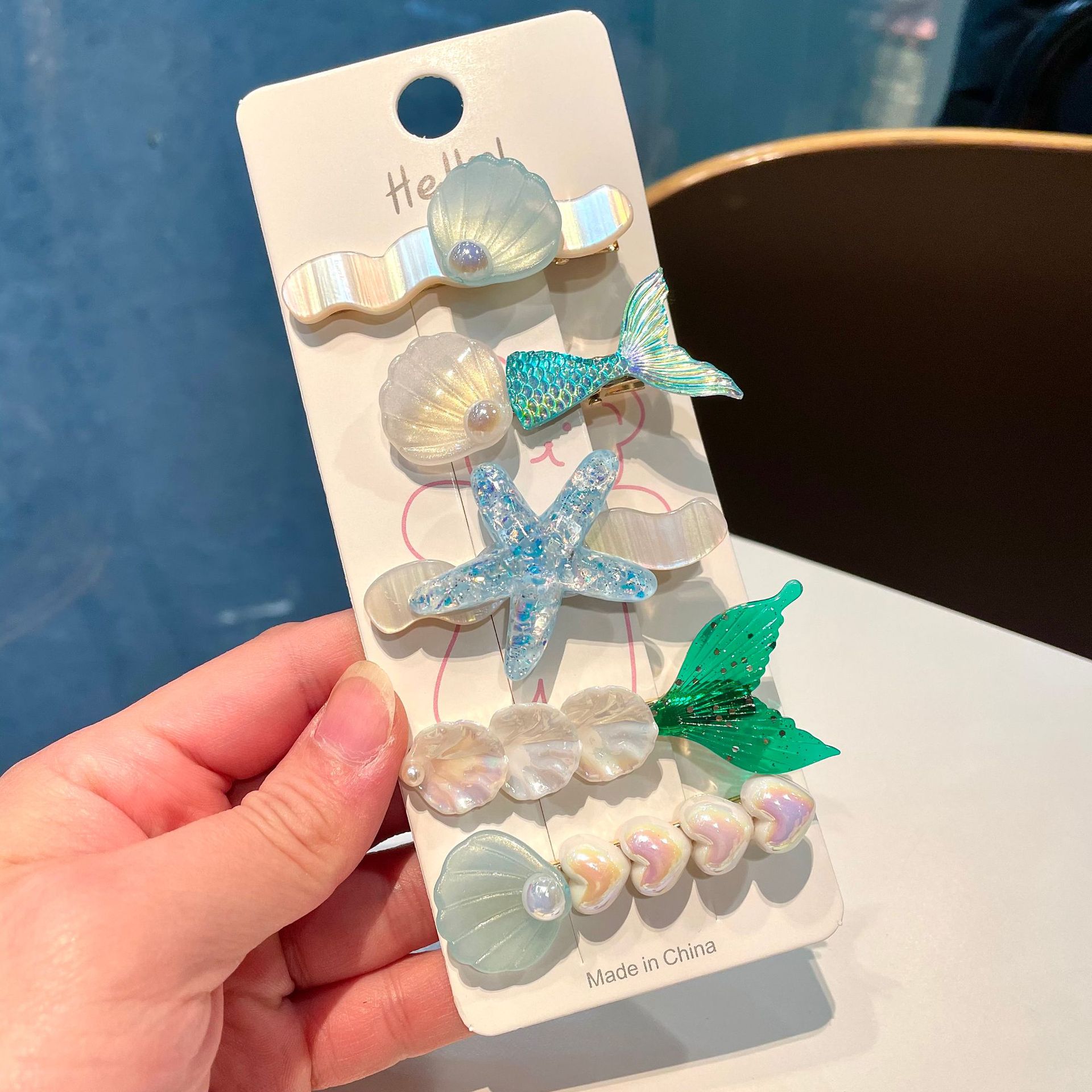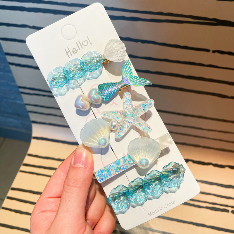 • 하늘색 불가사리 인어 머리핀 5 세트 (카드 포함)