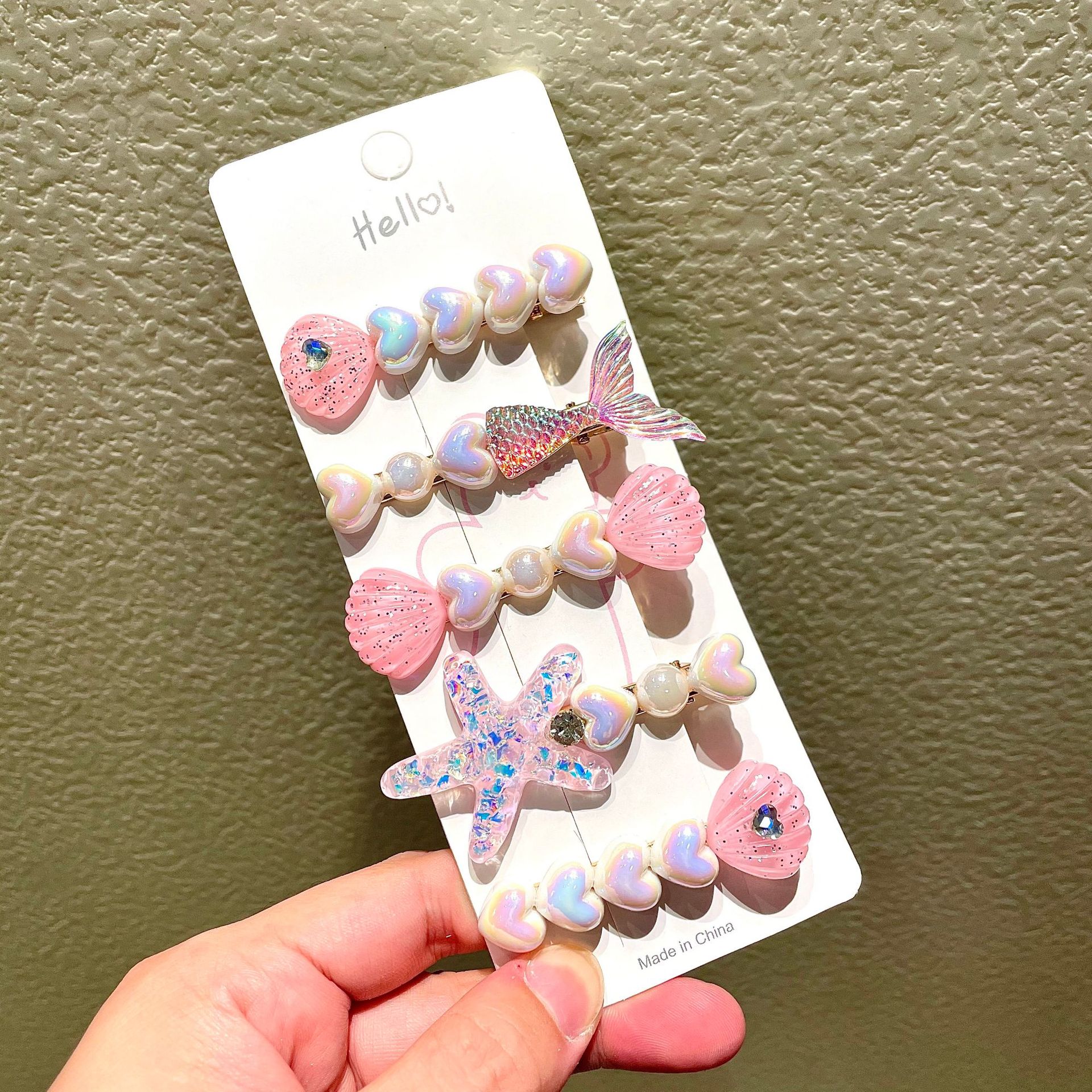 • 핑크 불가사리 인어 머리핀 5 세트 (카드 포함)