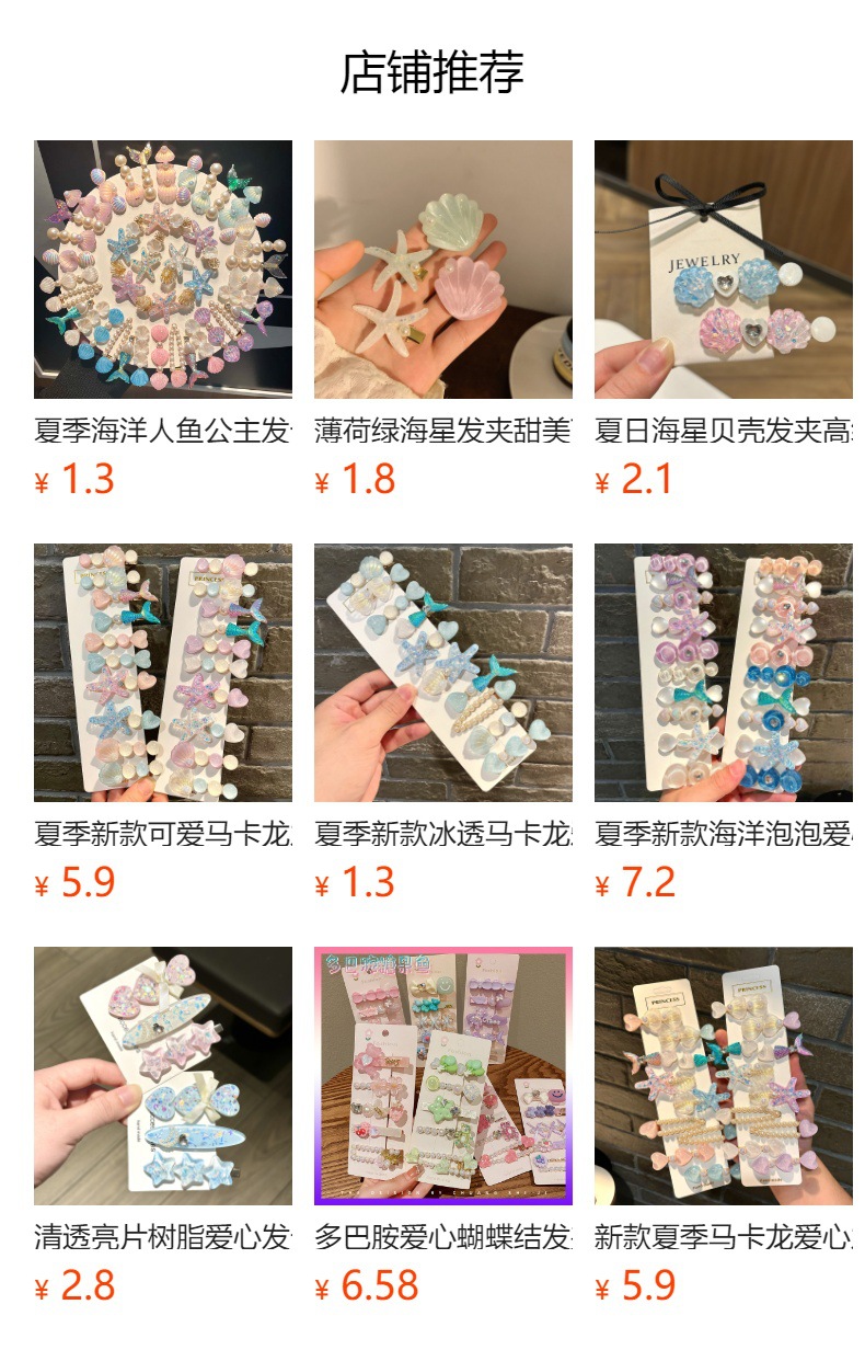 귀여운 바다 공주 불가사리 쉘 머리핀 어린이 머리핀 클립 진주 Duckbill 클립 헤어 액세서리 머리 장식 도매 여성스토어 가기