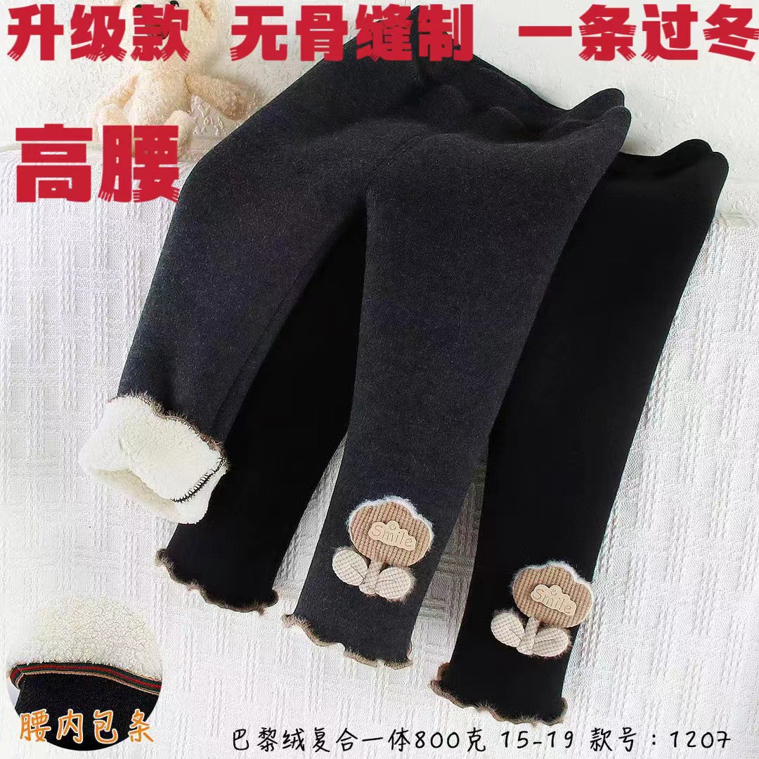 여아 겨울 면 바지 통합 벨벳 기모 두꺼운 따뜻한 바지 오픈 여아 바지 가을과 겨울 원활한 레깅스