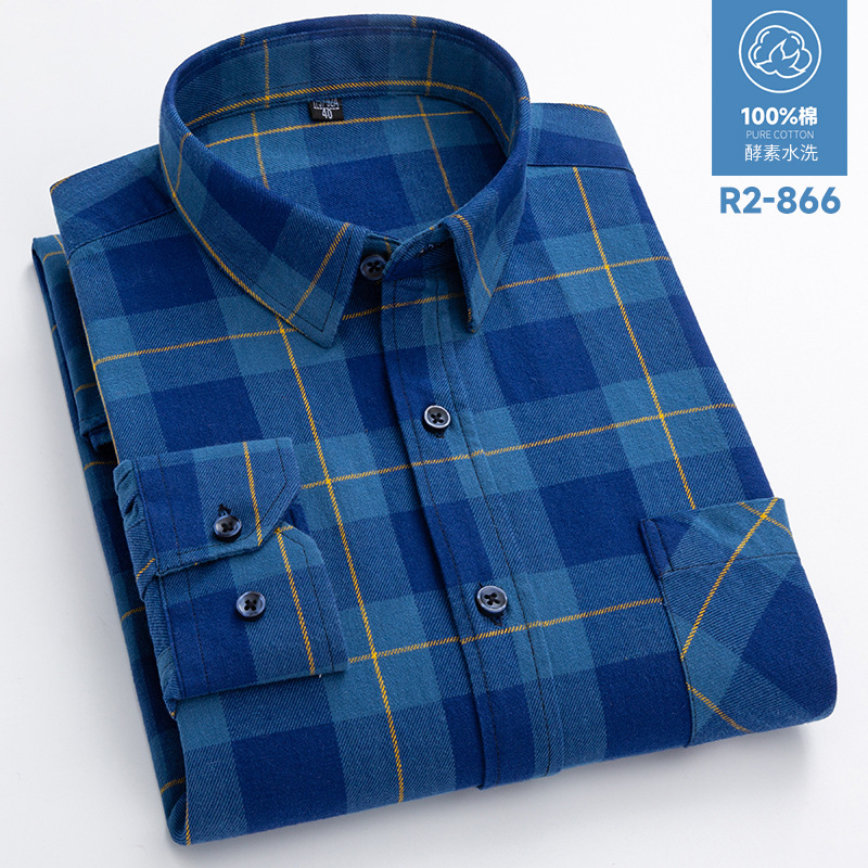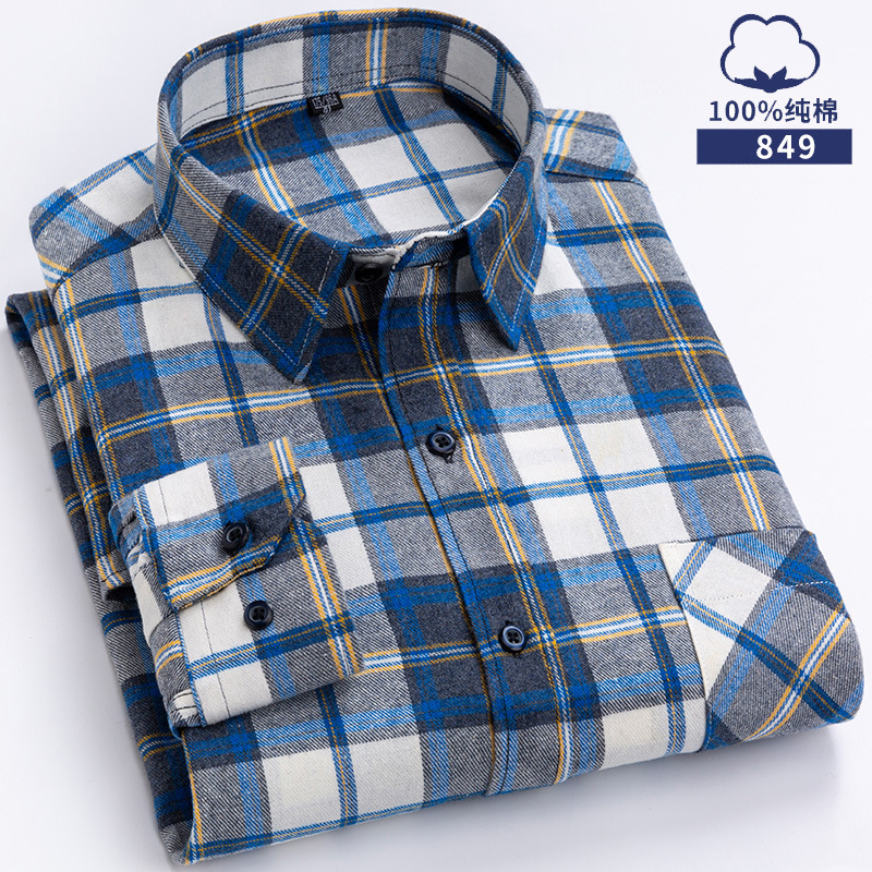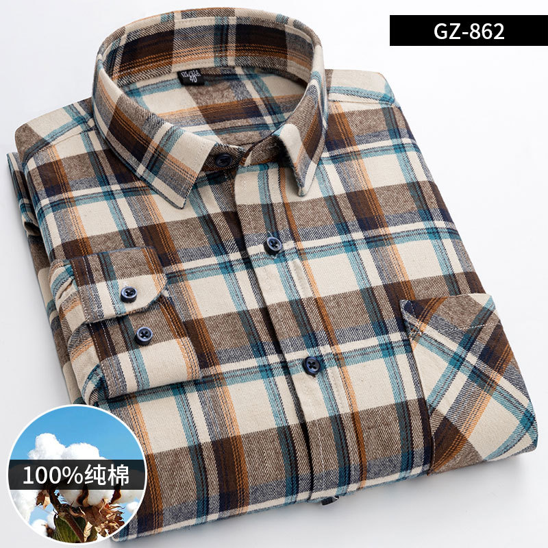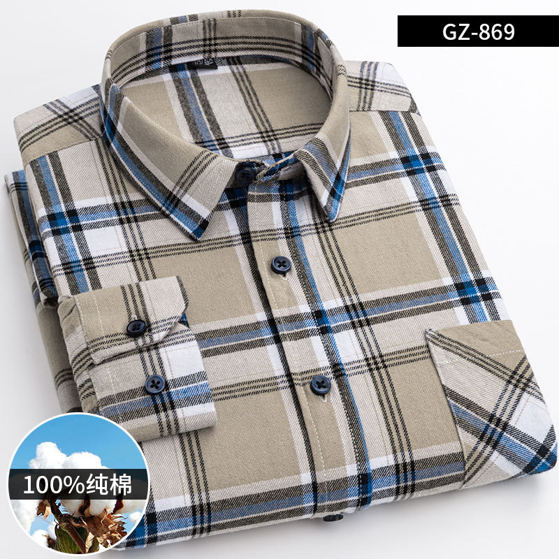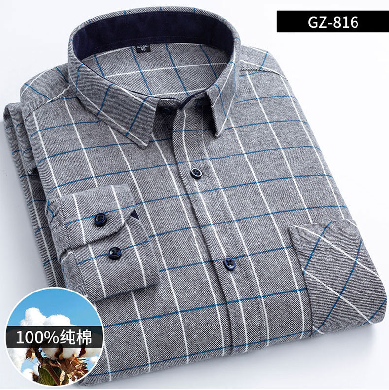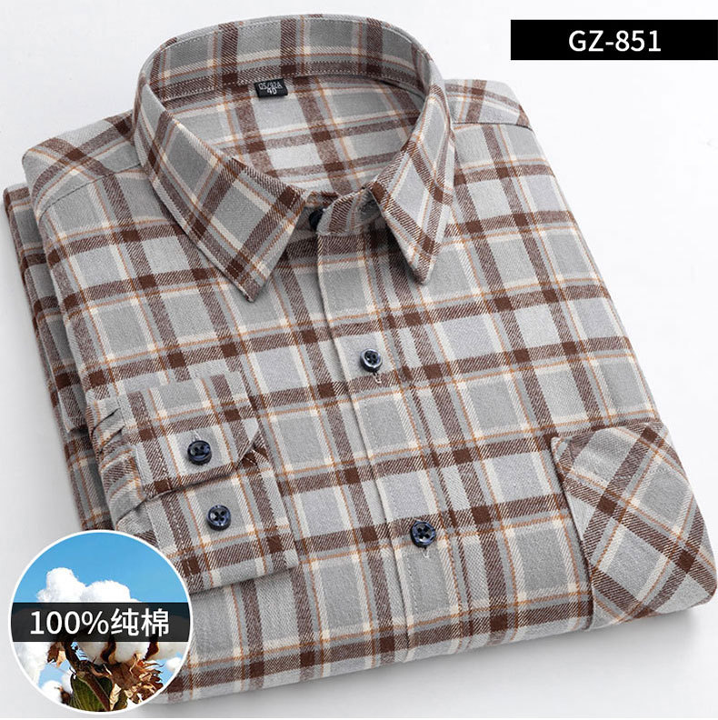 100 면 샌딩 긴팔 중년 셔츠 남자 가을 2024 새로운 도착 아빠의 봄과 가을 격자 무늬 면 셔츠스토어 가기