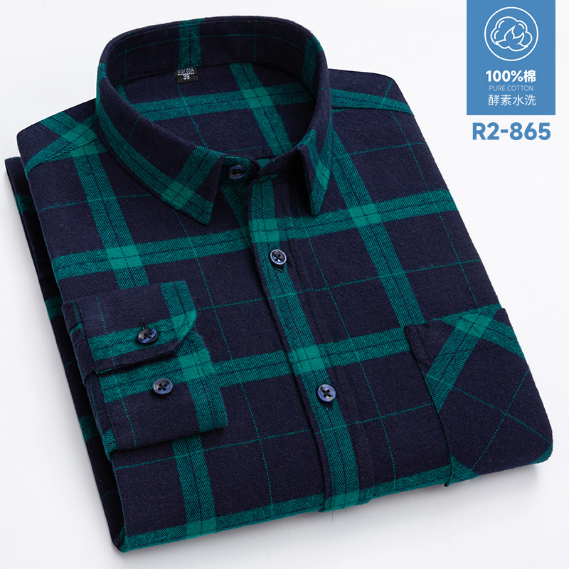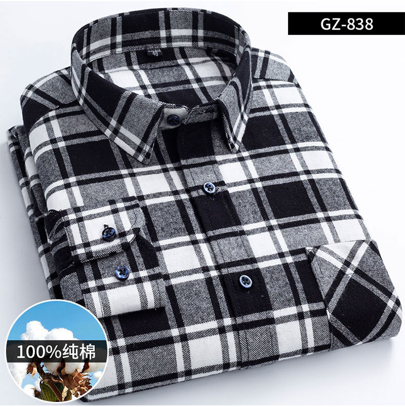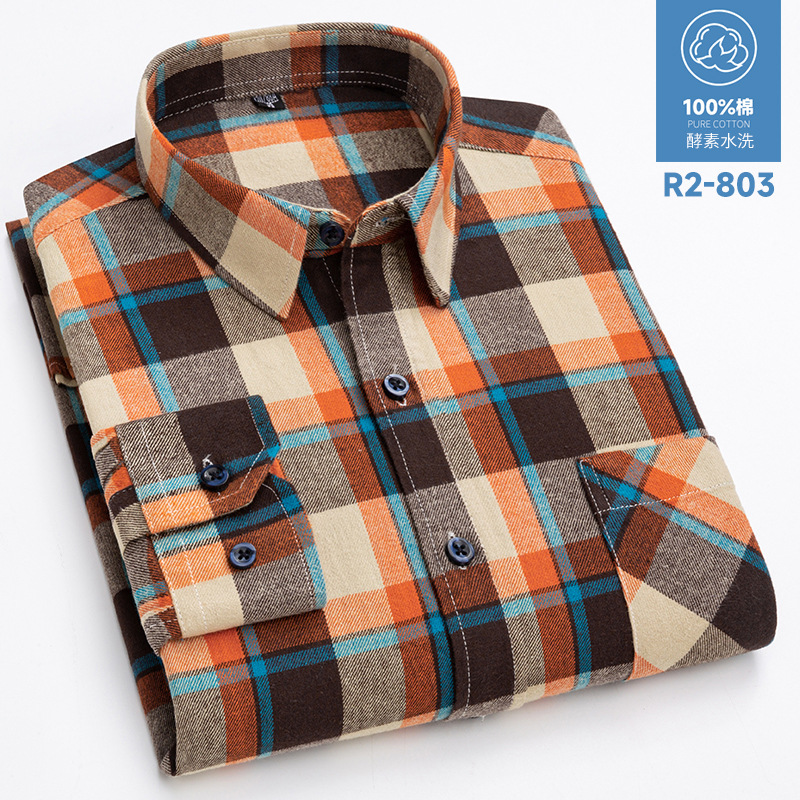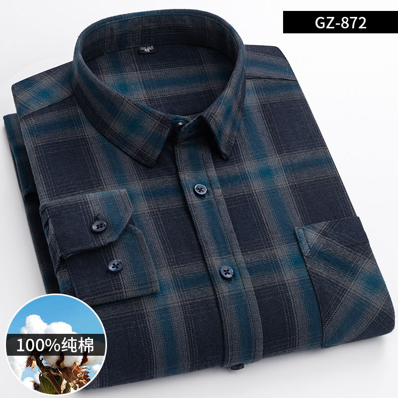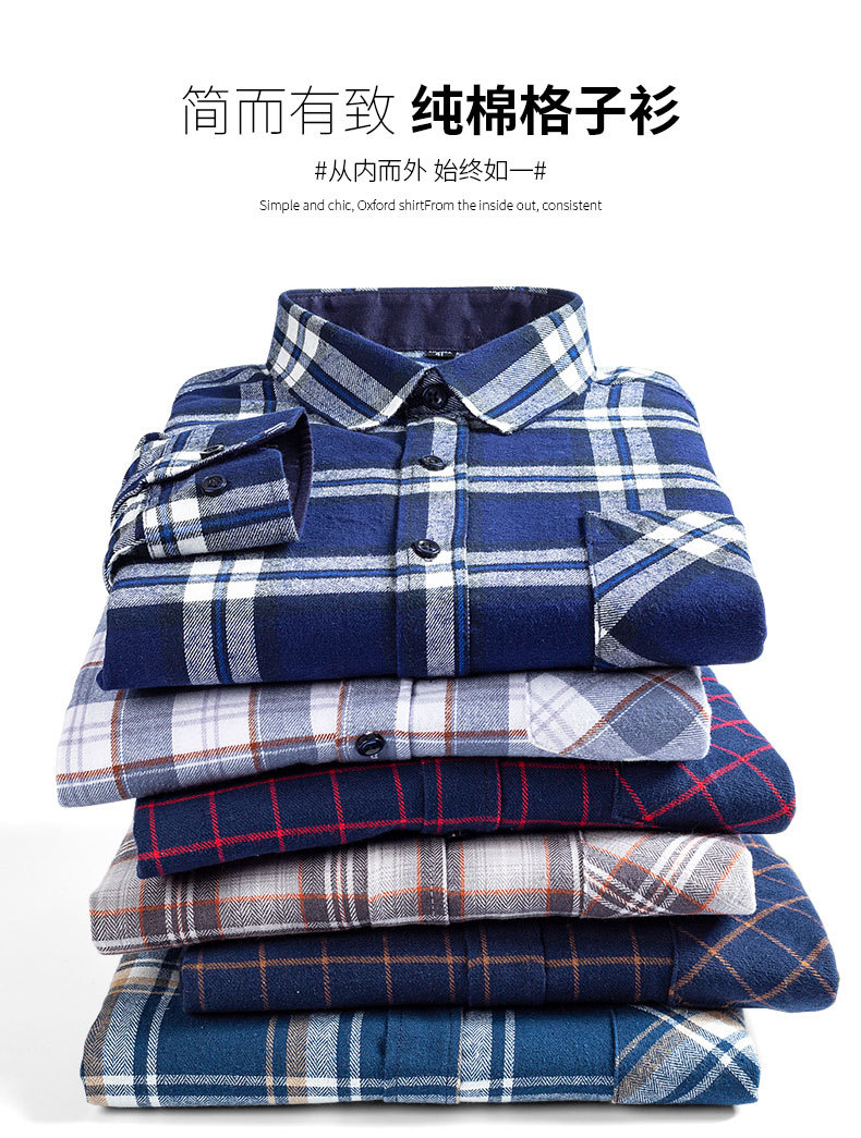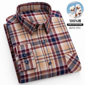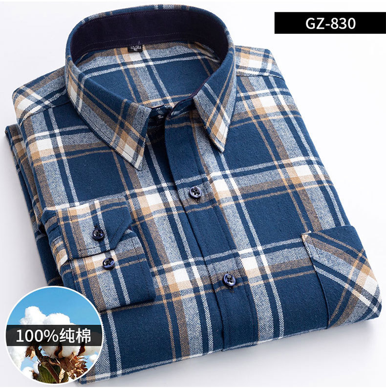 100 면 샌딩 긴팔 중년 셔츠 남자 가을 2024 새로운 도착 아빠의 봄과 가을 격자 무늬 면 셔츠스토어 가기