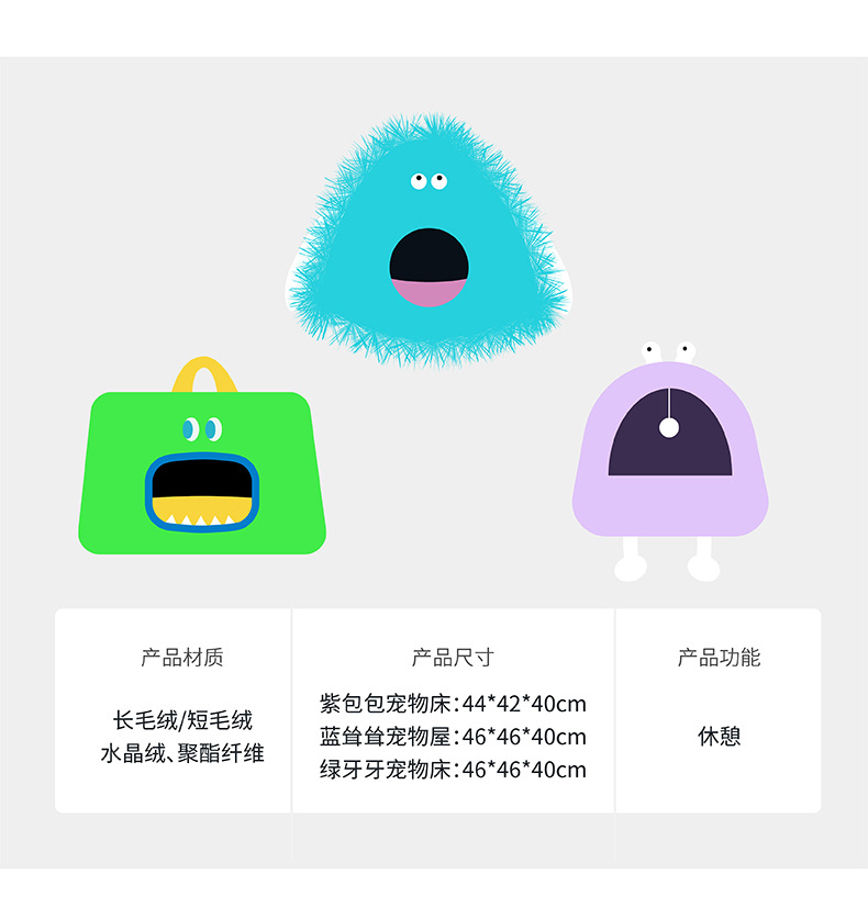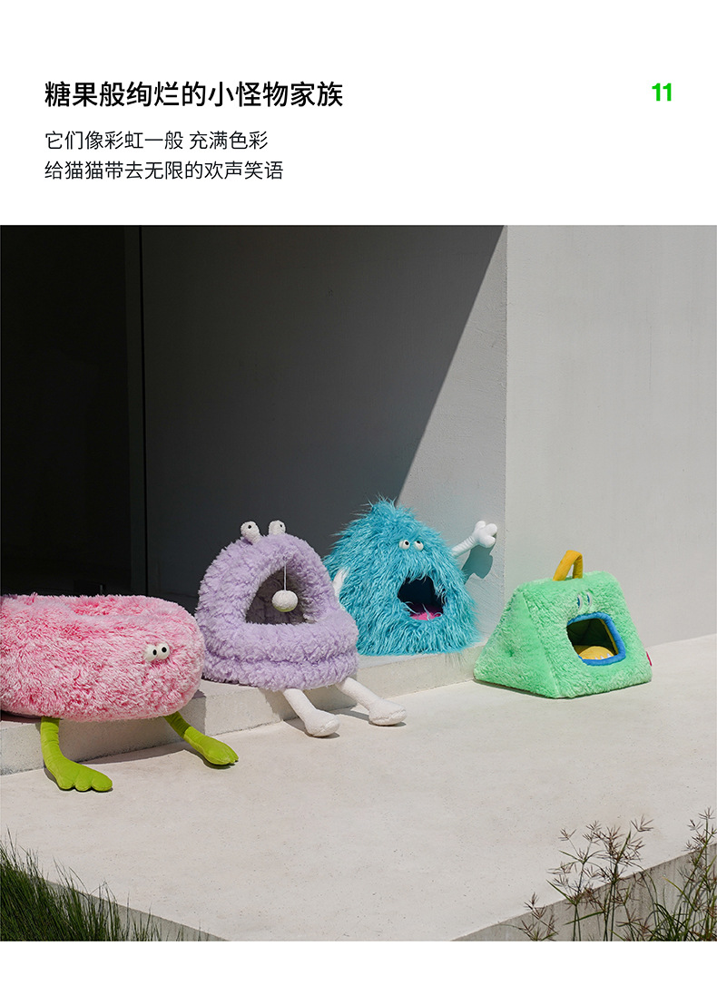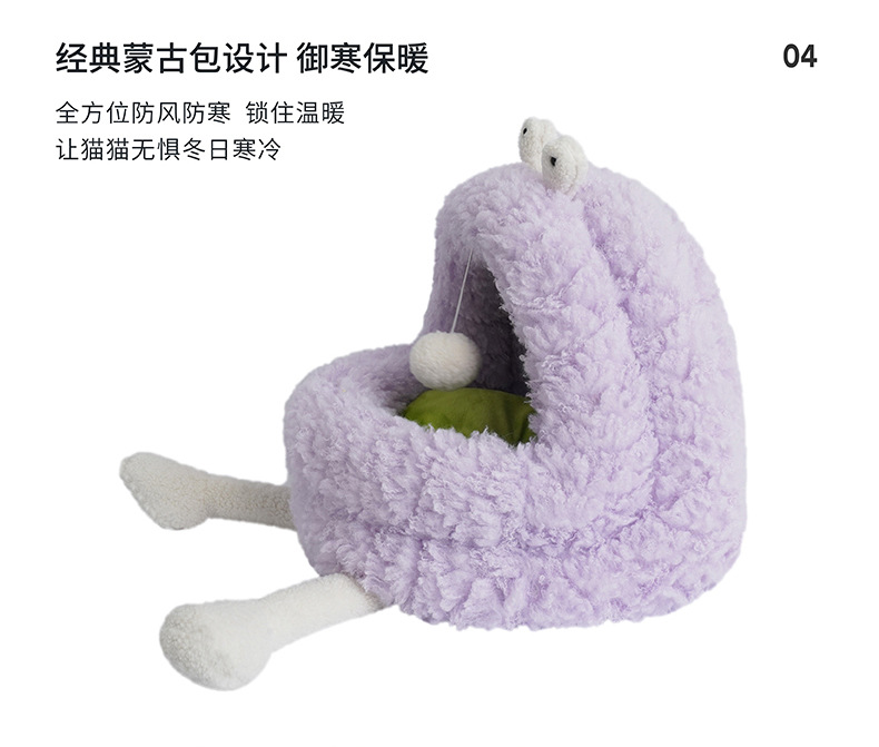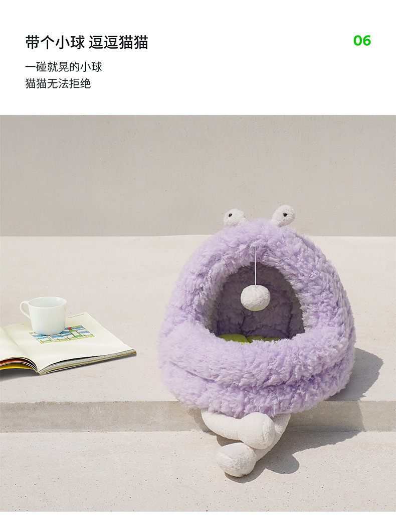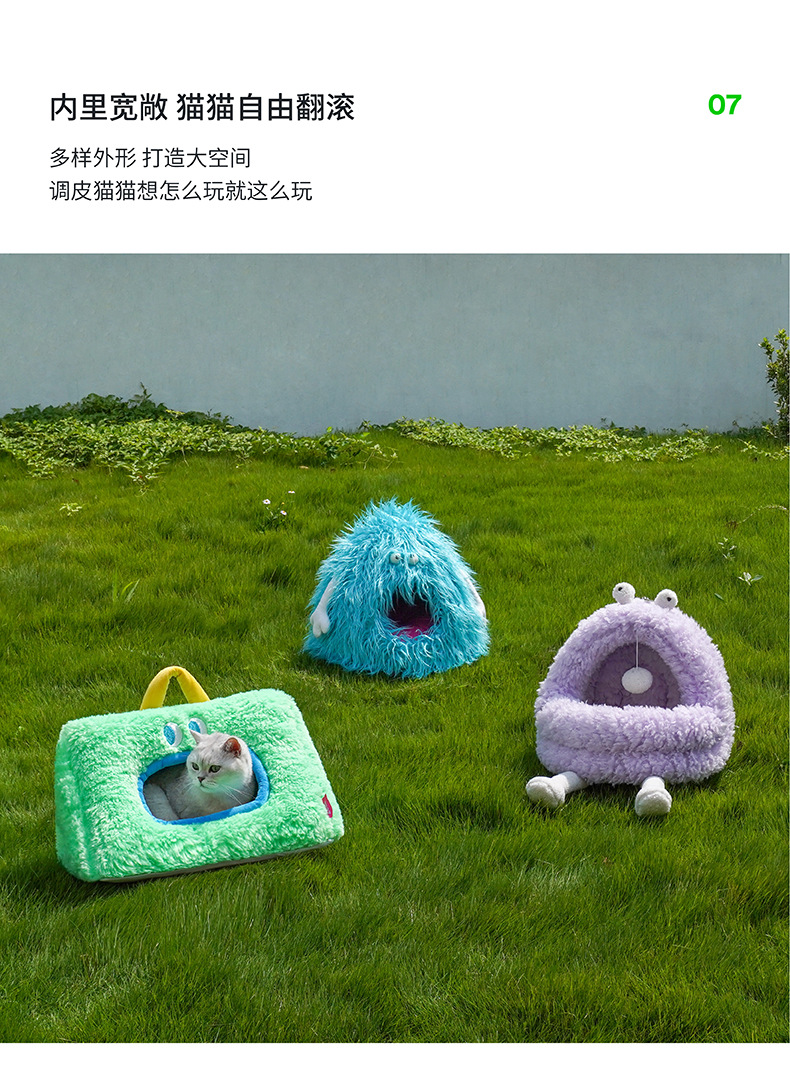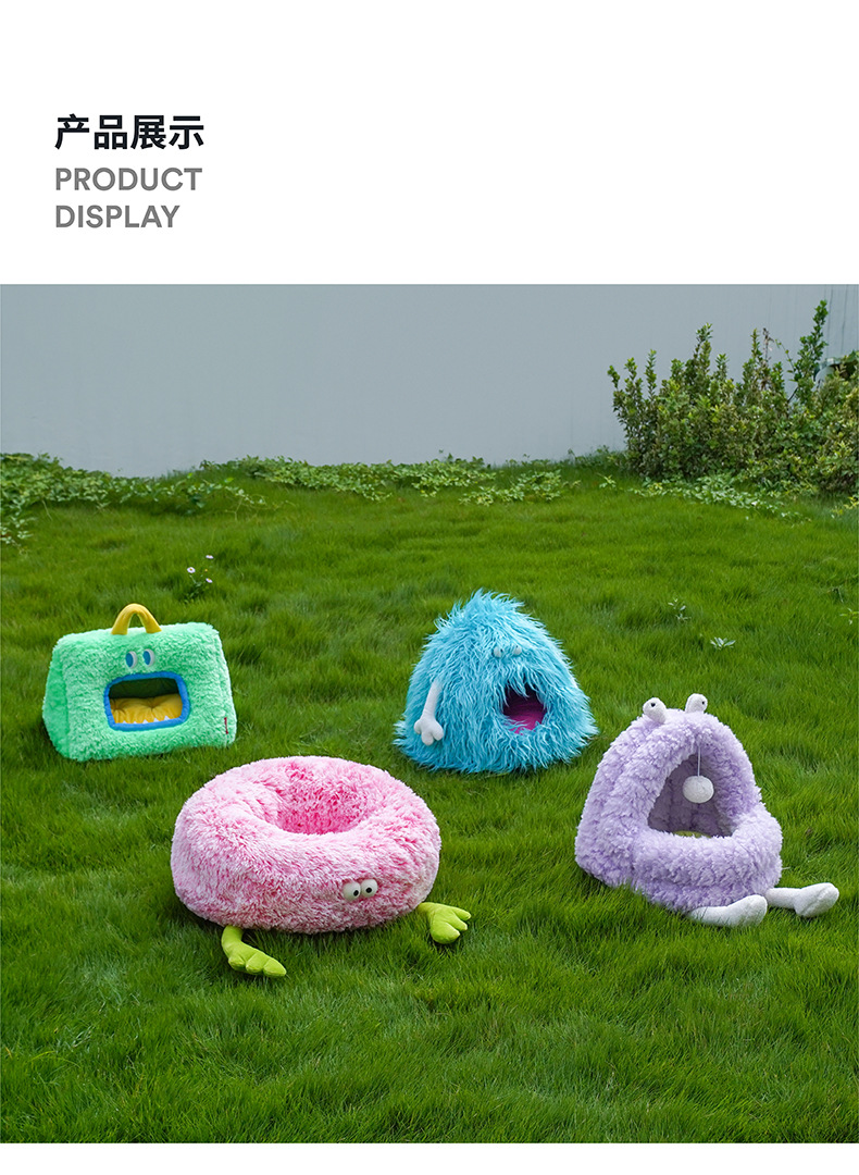 제즈 몬스터 애완 동물 침대 겨울 따뜻한 고양이 둥지 이동식 및 빨 수있는 반 폐쇄 고양이 둥지 매트 만화 봉제 애완 동물스토어 가기