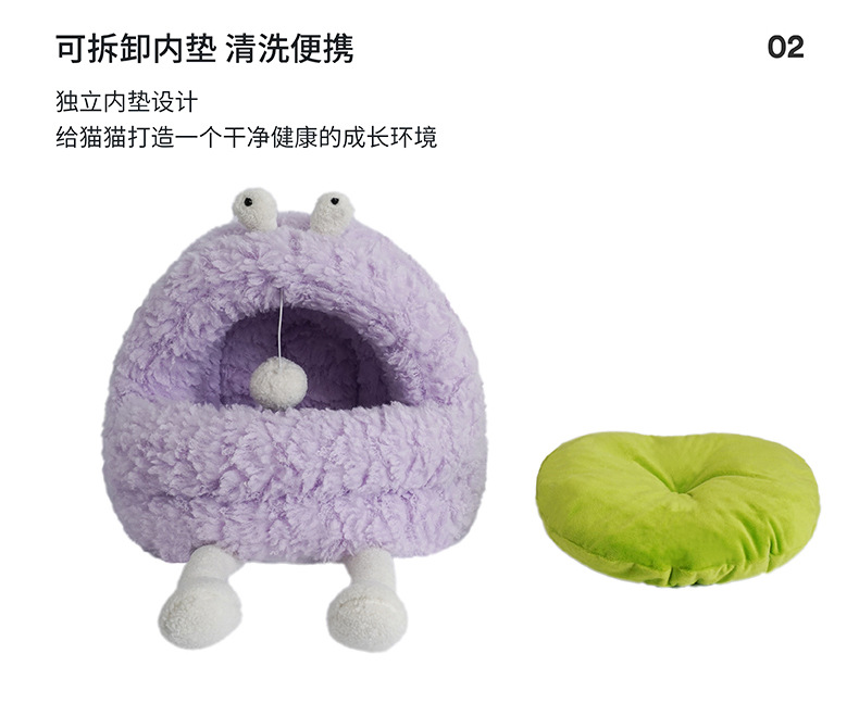 제즈 몬스터 애완 동물 침대 겨울 따뜻한 고양이 둥지 이동식 및 빨 수있는 반 폐쇄 고양이 둥지 매트 만화 봉제 애완 동물