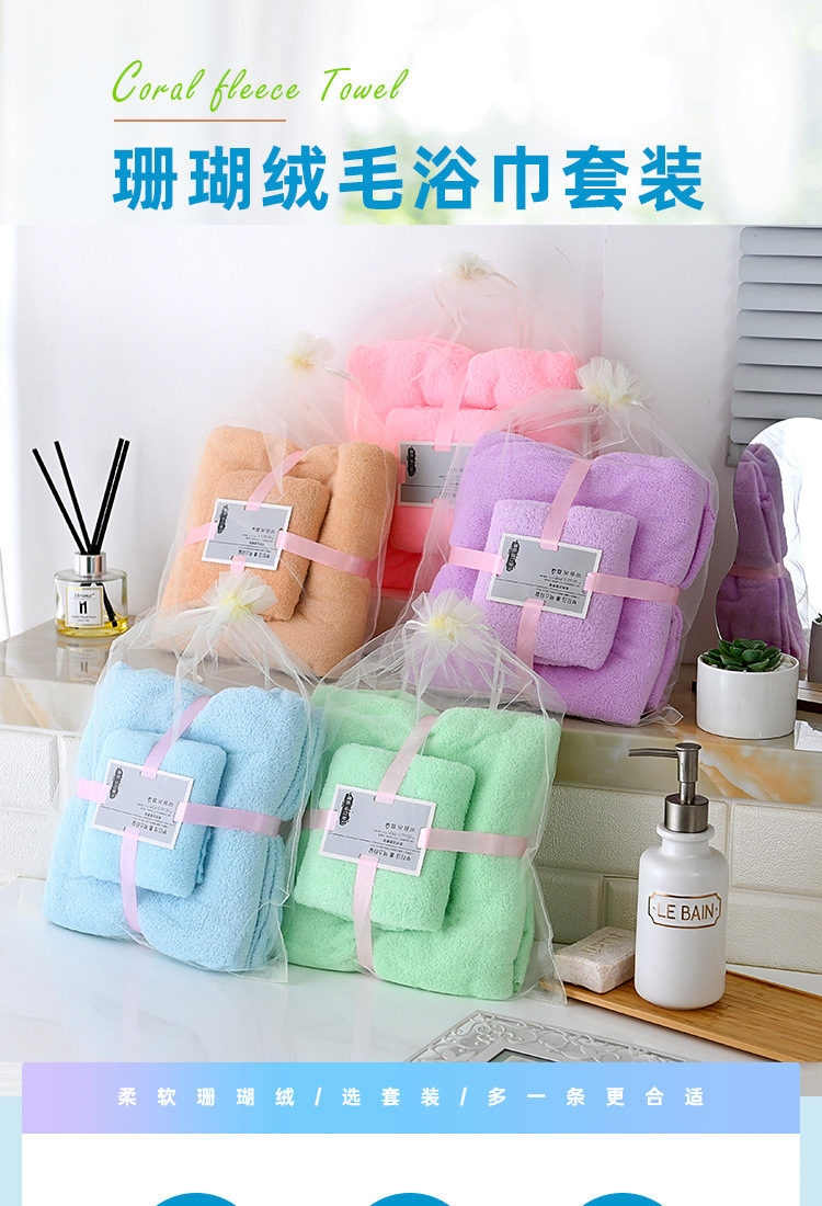 산호 벨벳 타월 목욕 타월 세트 부드럽고 흡수력 좋은 선물용 2피스 세트 커플용 흡수력 좋고 빠르게 건조되는 가정용스토어 가기