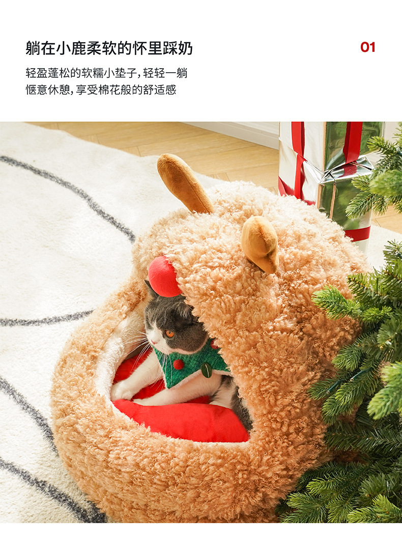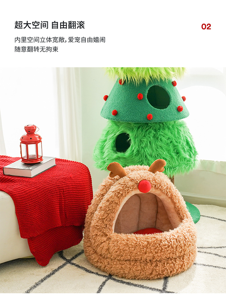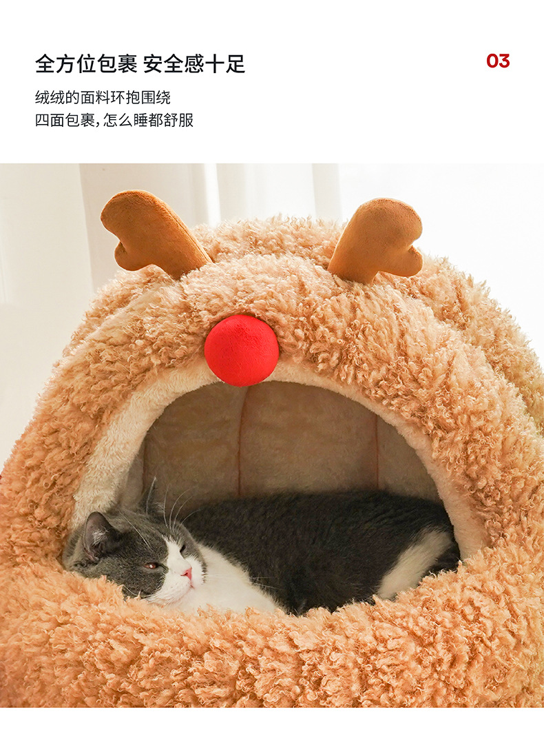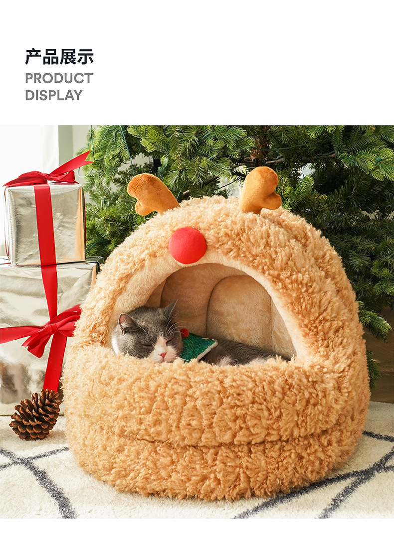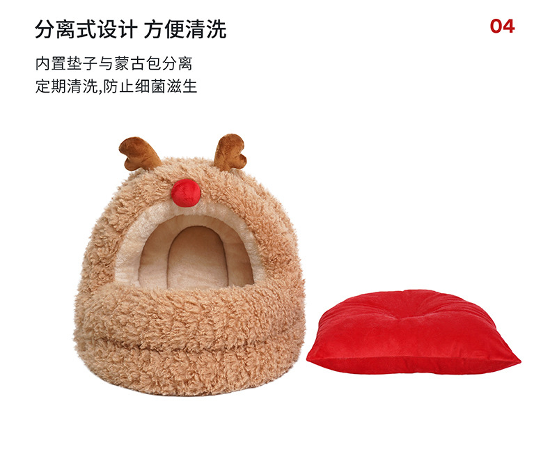 제즈 엘크 몽골 가방 고양이 둥지 겨울 따뜻한 고양이 큰 공간 반 밀폐형 이동식 및 빨 수있는 애완 동물 둥지 매트