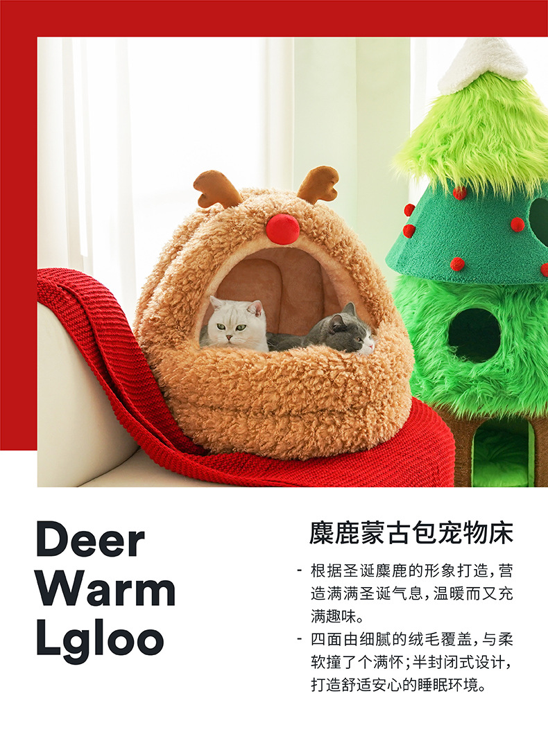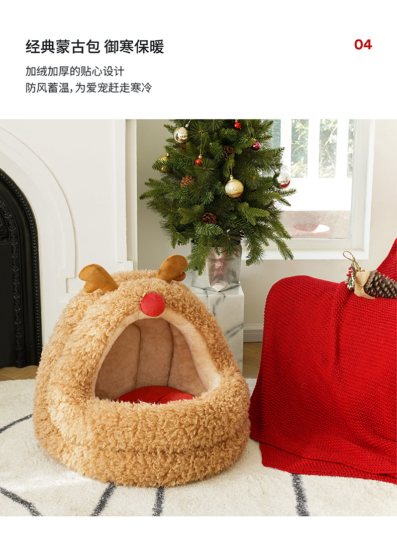 제즈 엘크 몽골 가방 고양이 둥지 겨울 따뜻한 고양이 큰 공간 반 밀폐형 이동식 및 빨 수있는 애완 동물 둥지 매트스토어 가기