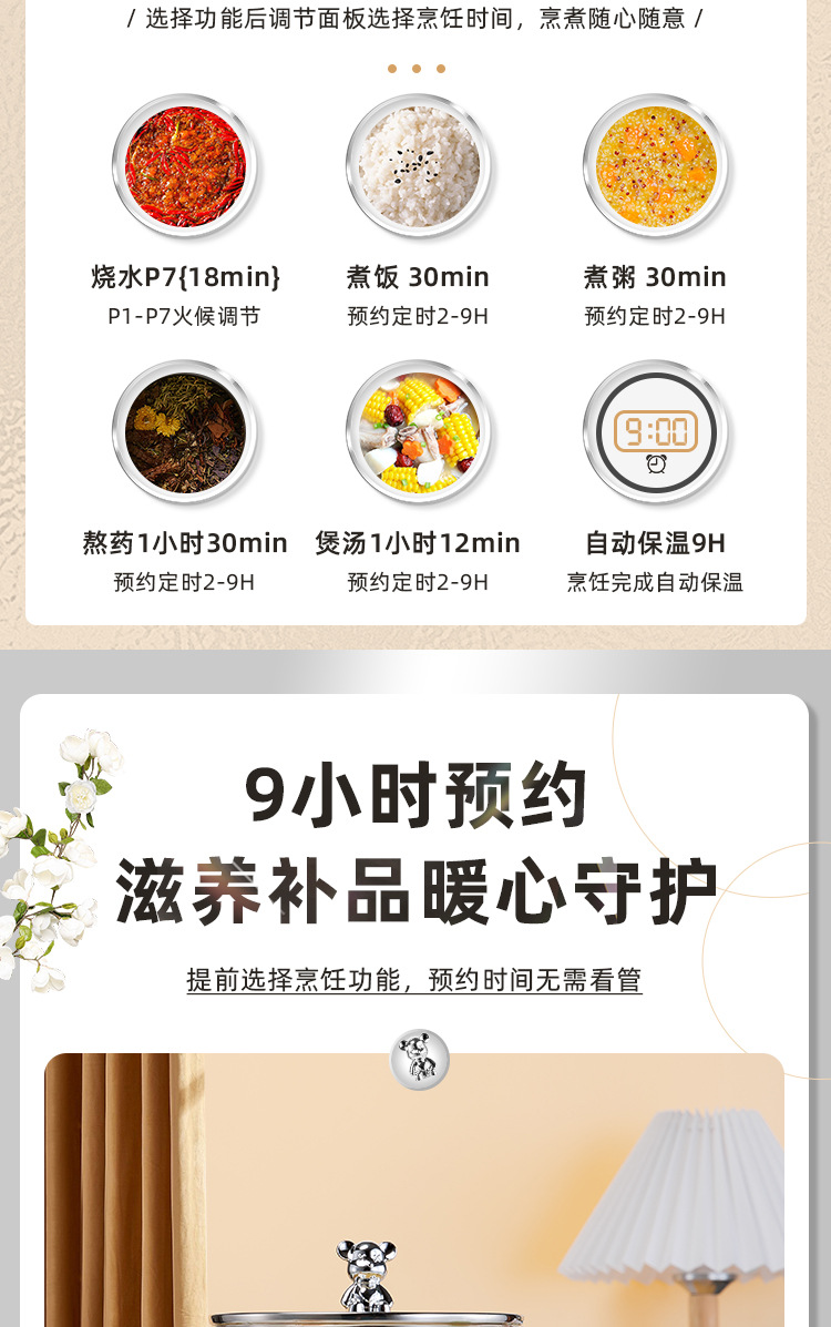 가정용 지능형 전기 요리 냄비 학생 기숙사 다기능 분할 전기 스튜 냄비 새 둥지 스튜 냄비 곰 건강 냄비