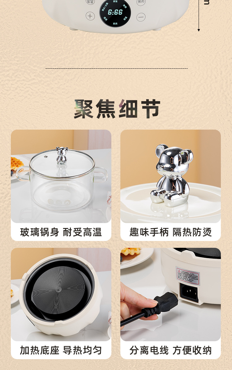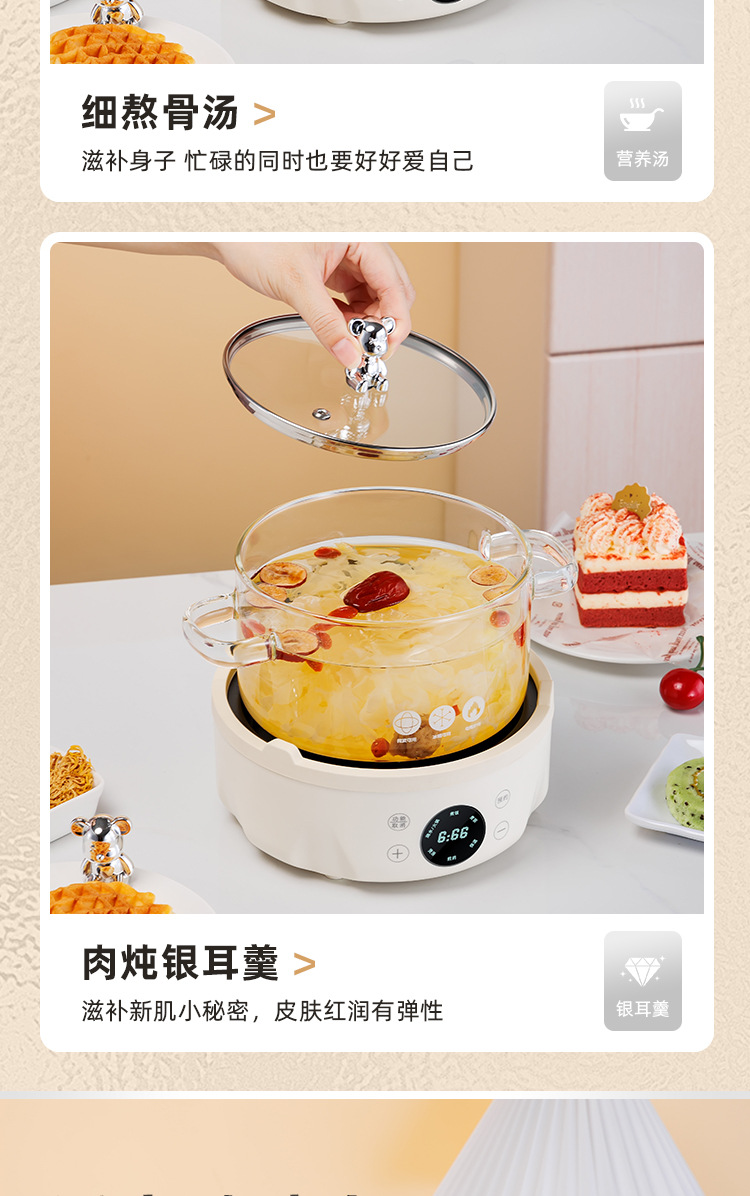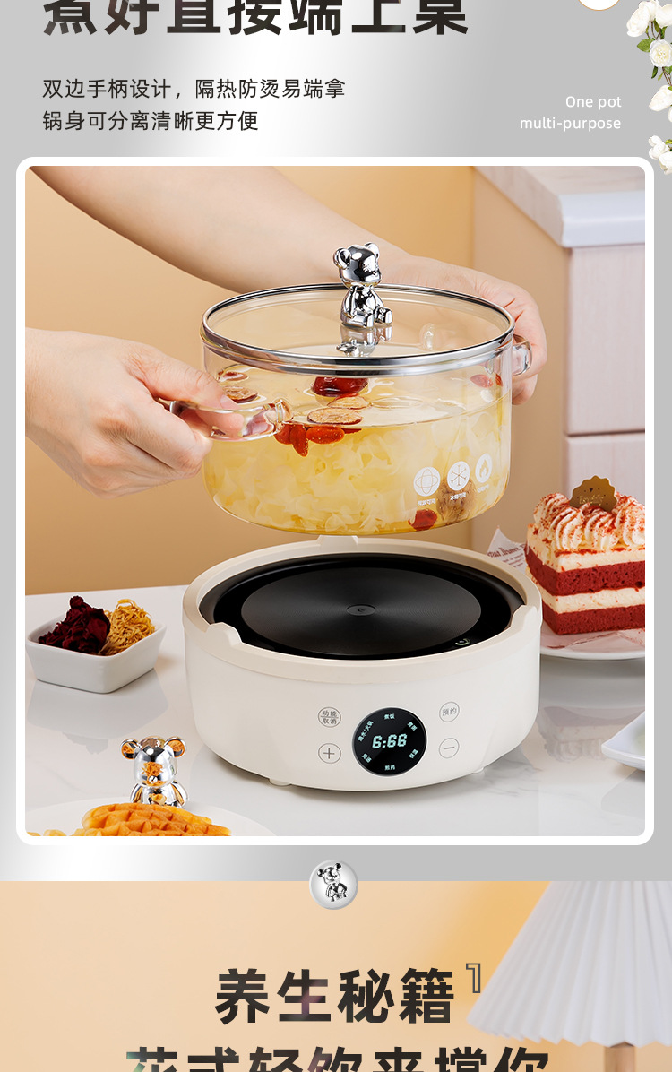 가정용 지능형 전기 요리 냄비 학생 기숙사 다기능 분할 전기 스튜 냄비 새 둥지 스튜 냄비 곰 건강 냄비스토어 가기
