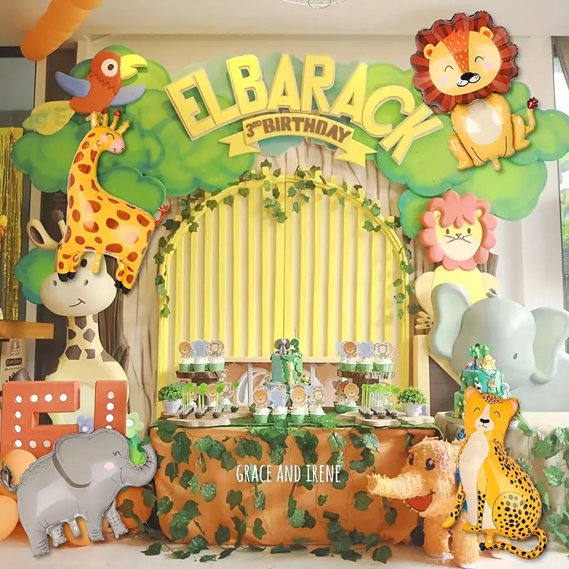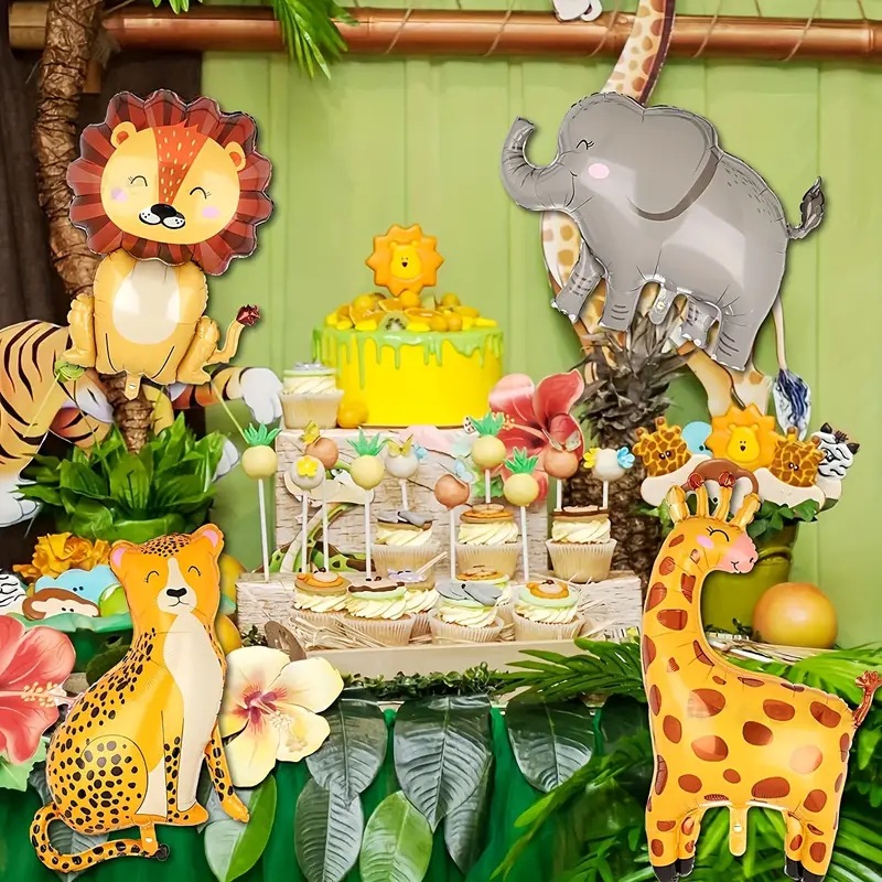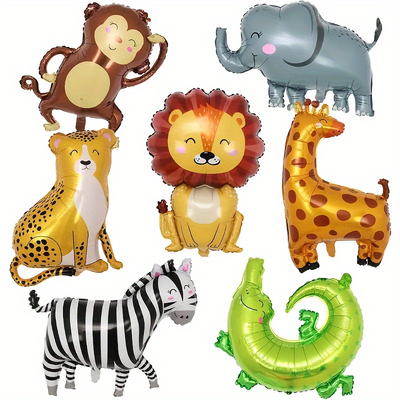 6PCS 만화 동물 알루미늄 필름 풍선 세트 코끼리 얼룩말 사자 악어 정글 동물 테마 알루미늄 호일 풍선