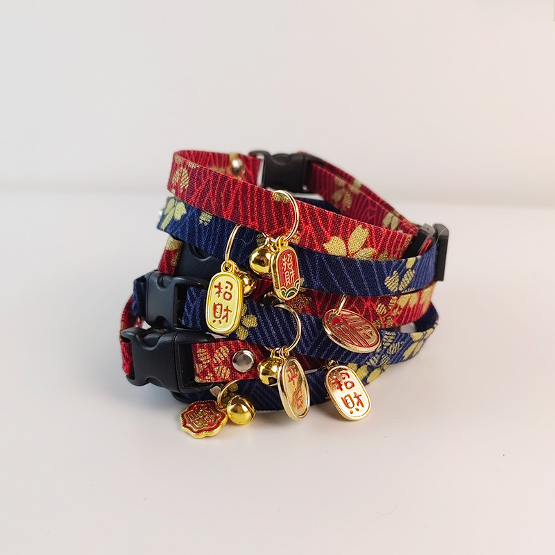 중국 스타일 애완 동물 목 벨 고양이 목걸이 귀여운 고양이 작은 개 강아지 새끼 고양이 액세서리 조정 가능한 장식