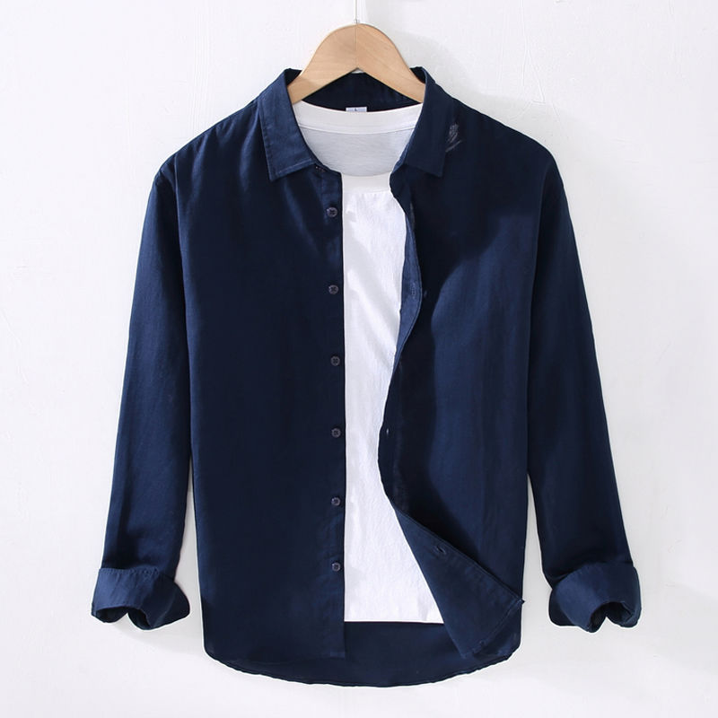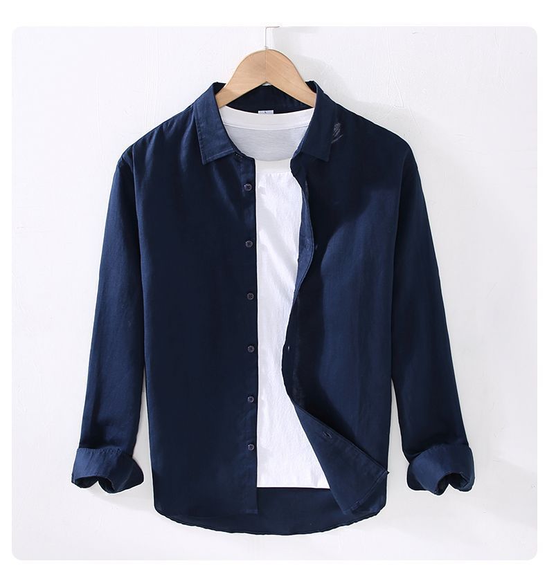 봄과 가을 옷깃 긴 소매 린넨 셔츠 남자의 일본식 느슨한 패션 캐주얼 화이트 셔츠 면 린넨 셔츠 재킷