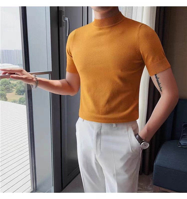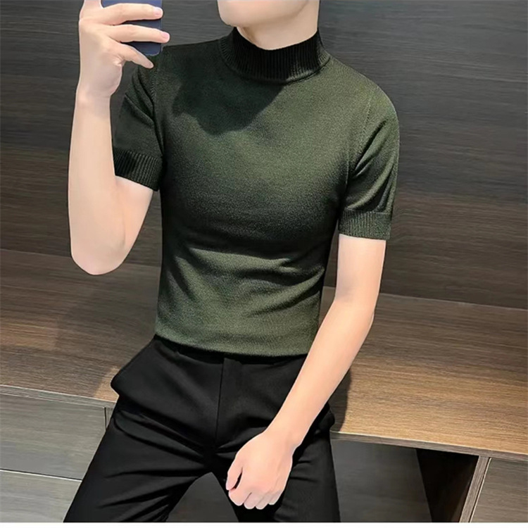 가을과 겨울 남성용 니트 셔츠 반팔 반 터틀넥 슬림핏 내부 스웨터 남성용 반팔베이스 셔츠 단색 웜 탑스토어 가기