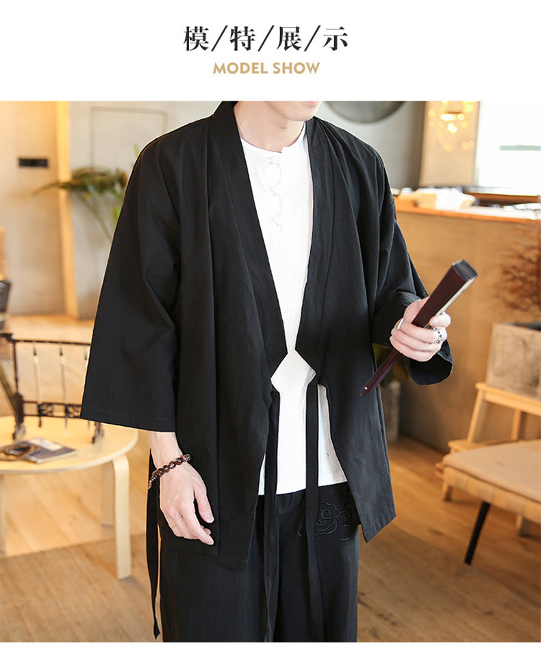 3 점 슬리브 Hanfu 남자의 고대 의상 사이드 가디건 중국 스타일 가운 간단한 목가적 누워 젠 전통 문화 코트