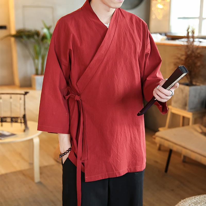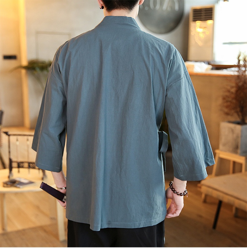 3 점 슬리브 Hanfu 남자의 고대 의상 사이드 가디건 중국 스타일 가운 간단한 목가적 누워 젠 전통 문화 코트스토어 가기