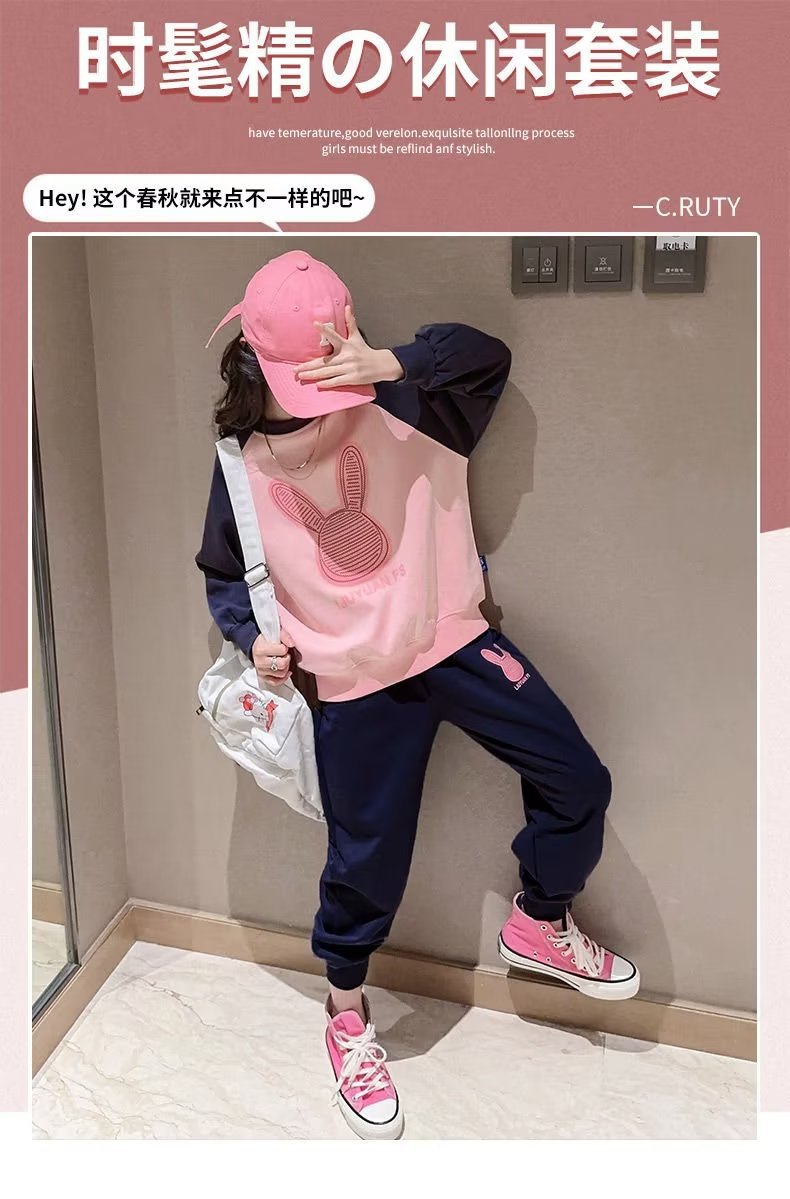 2023 새로운 가을, 겨울 운동복 정장 한국 스타일 외국 스타일 다목적 스포츠 정장 큰 어린이를위한 느슨한 캐주얼 아동복
