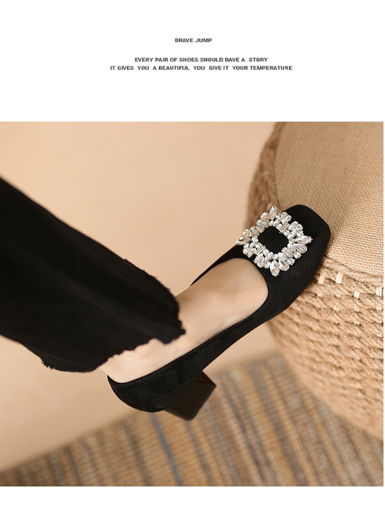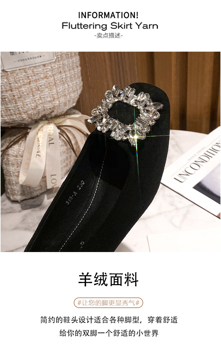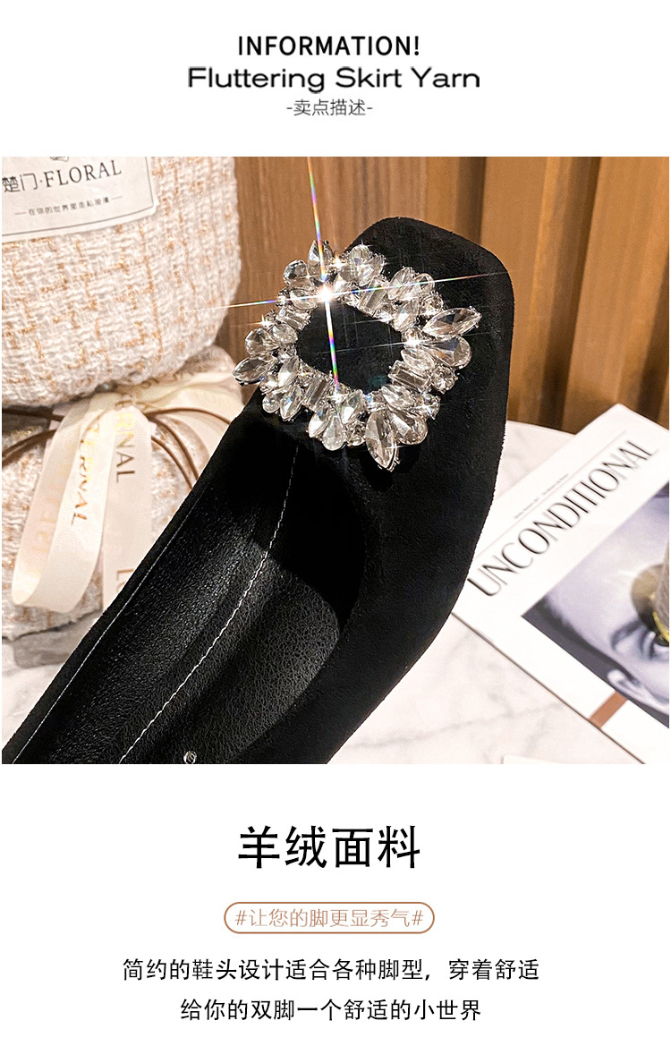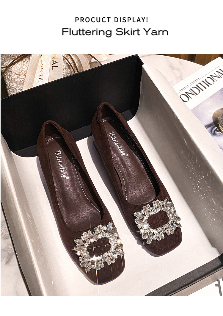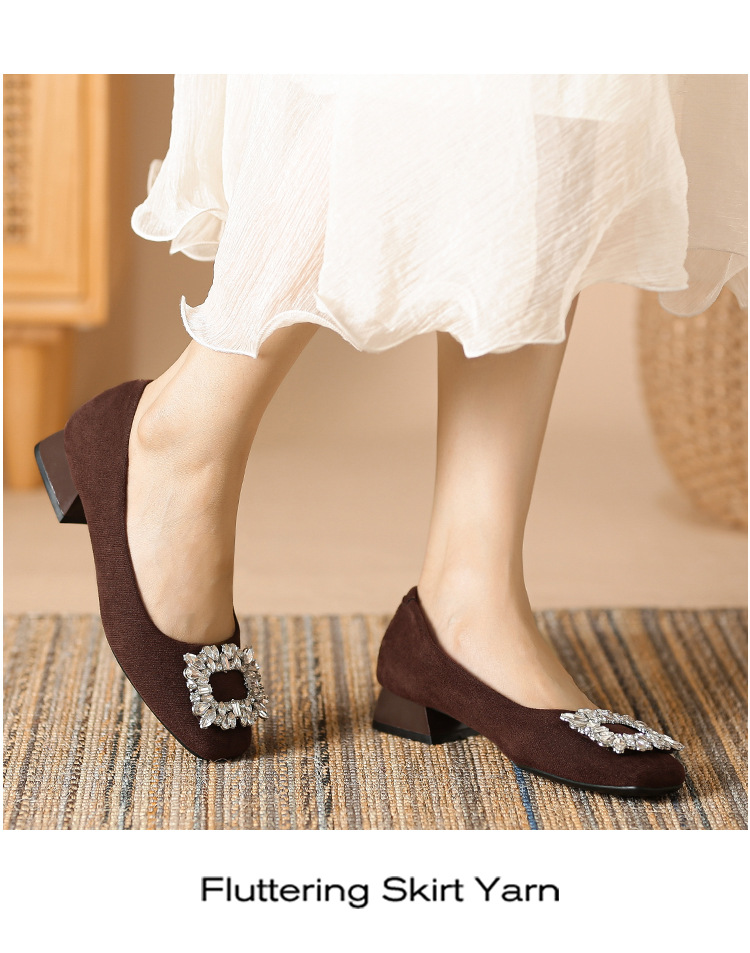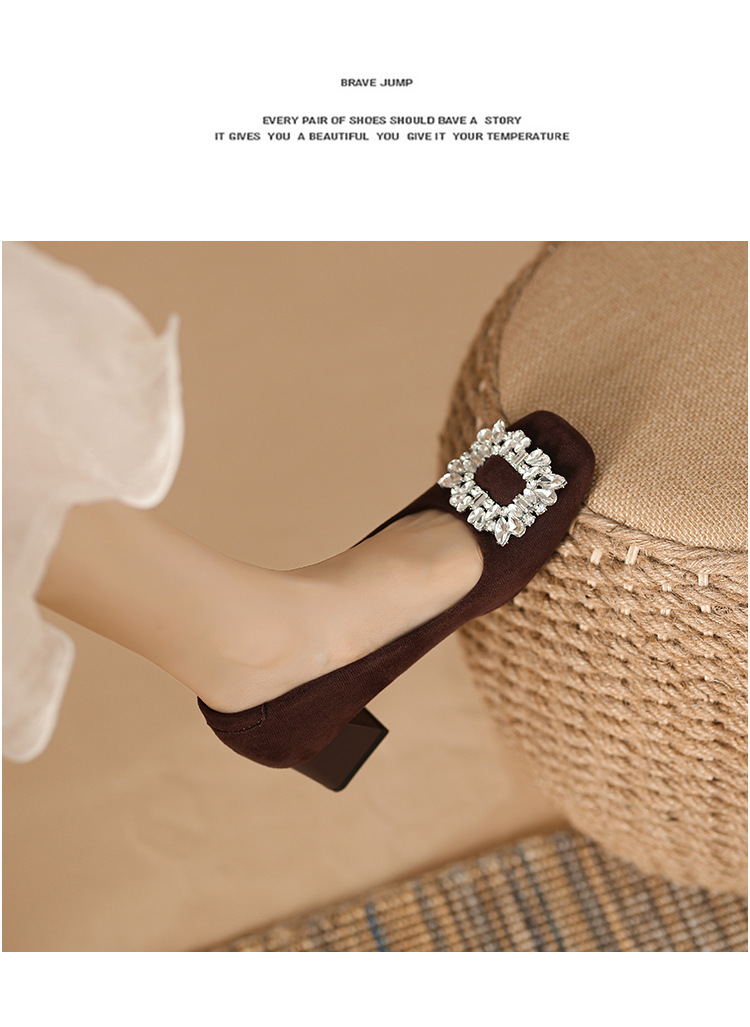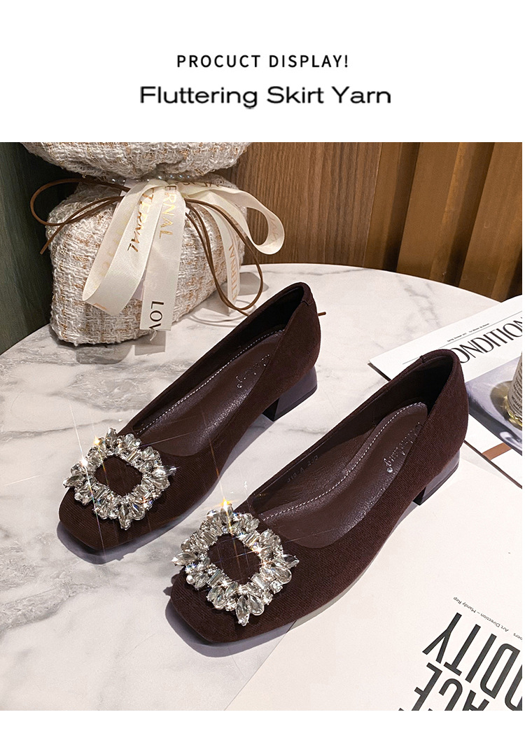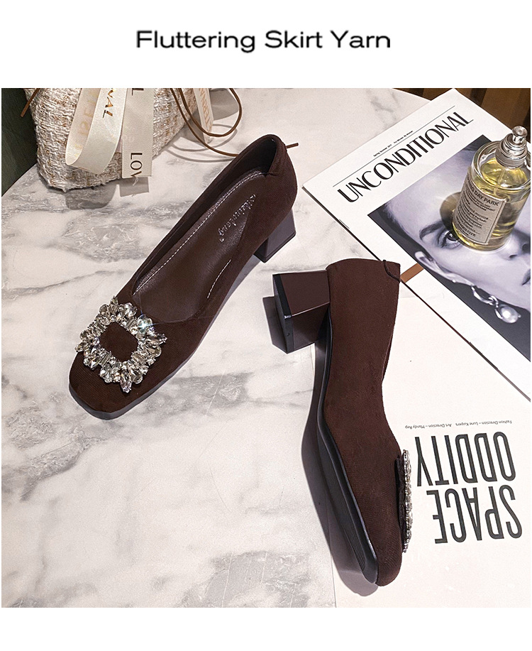새로운 봄과 가을 스퀘어 헤드 로우 힐 신발 여성 통근 여성 신발 얕은 입 라인 석 스퀘어 버클 피곤하지 않은 발 두꺼운 굽 신발