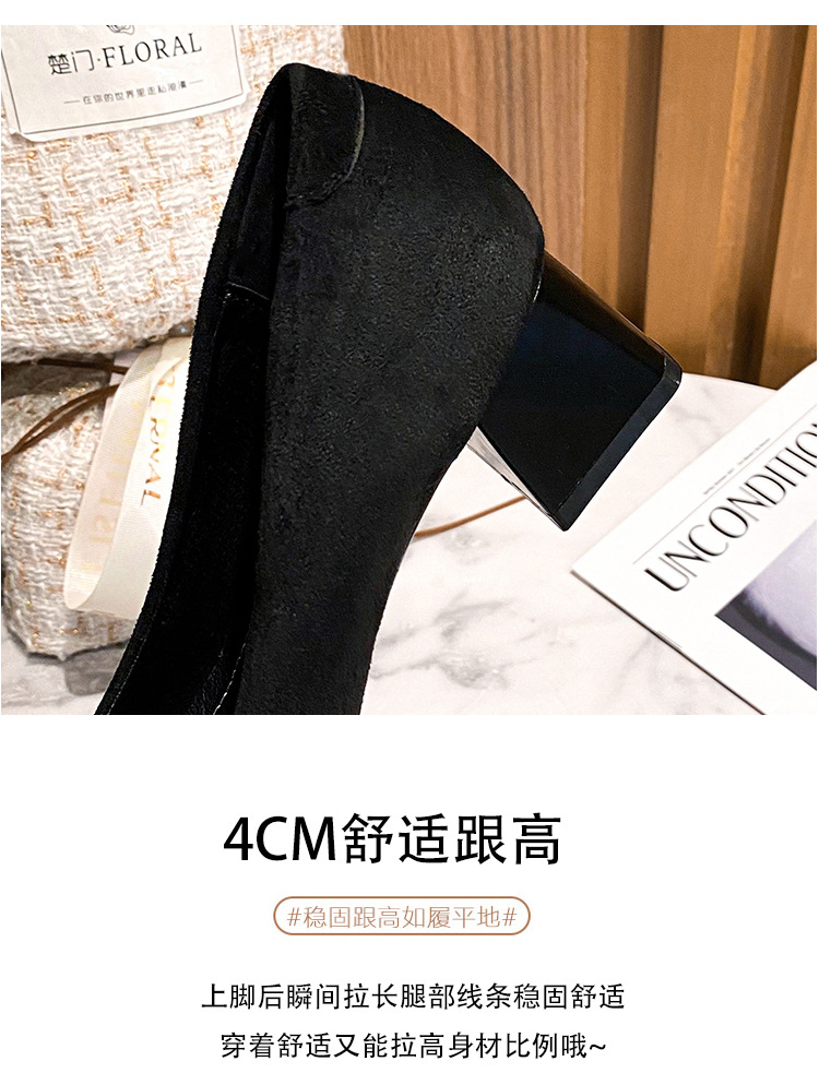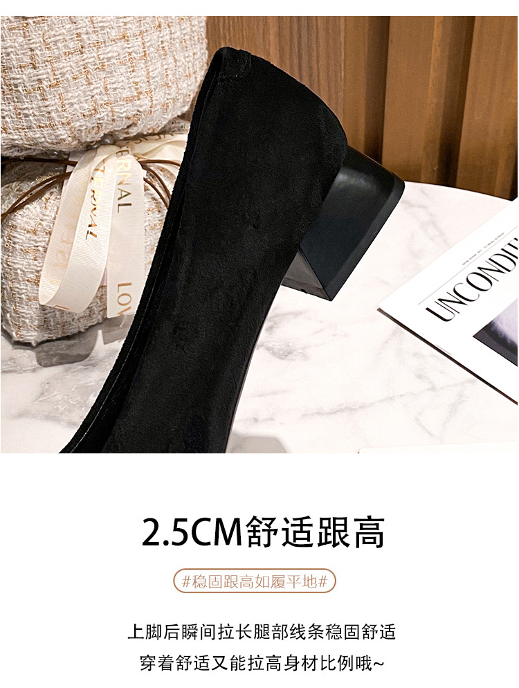 새로운 봄과 가을 스퀘어 헤드 로우 힐 신발 여성 통근 여성 신발 얕은 입 라인 석 스퀘어 버클 피곤하지 않은 발 두꺼운 굽 신발스토어 가기