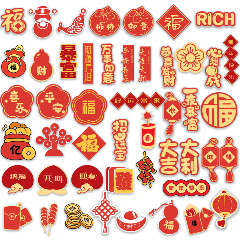50 만화 봄 축제 작은 장식 낙서 스티커를 장식 할 수 있습니다 수하물 기타 노트북 방수 폭발 도매