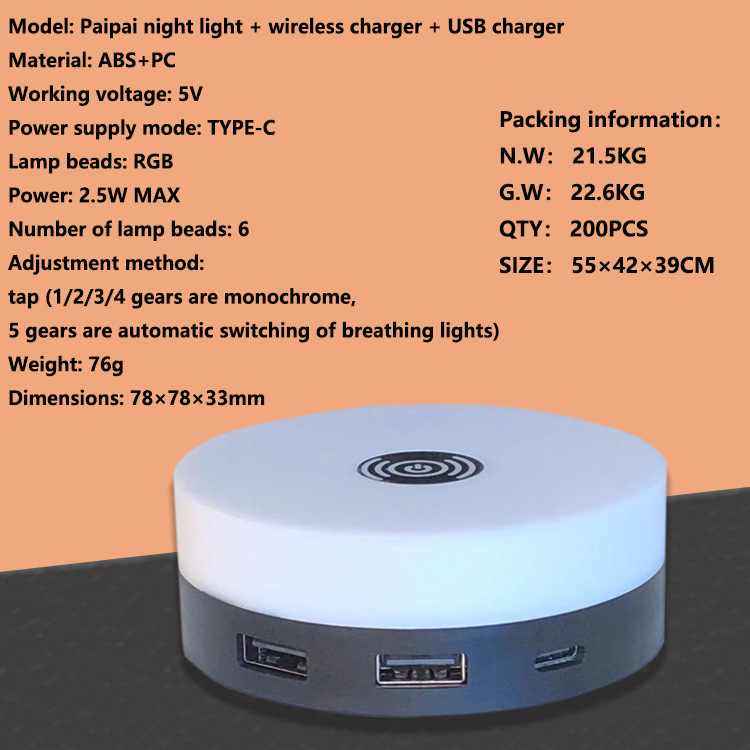 RGB 무선 충전 다채로운 분위기 침대 옆 램프 침실 수유 창조적 인 선물 LED 팻 야간 조명 크로스 보더스토어 가기