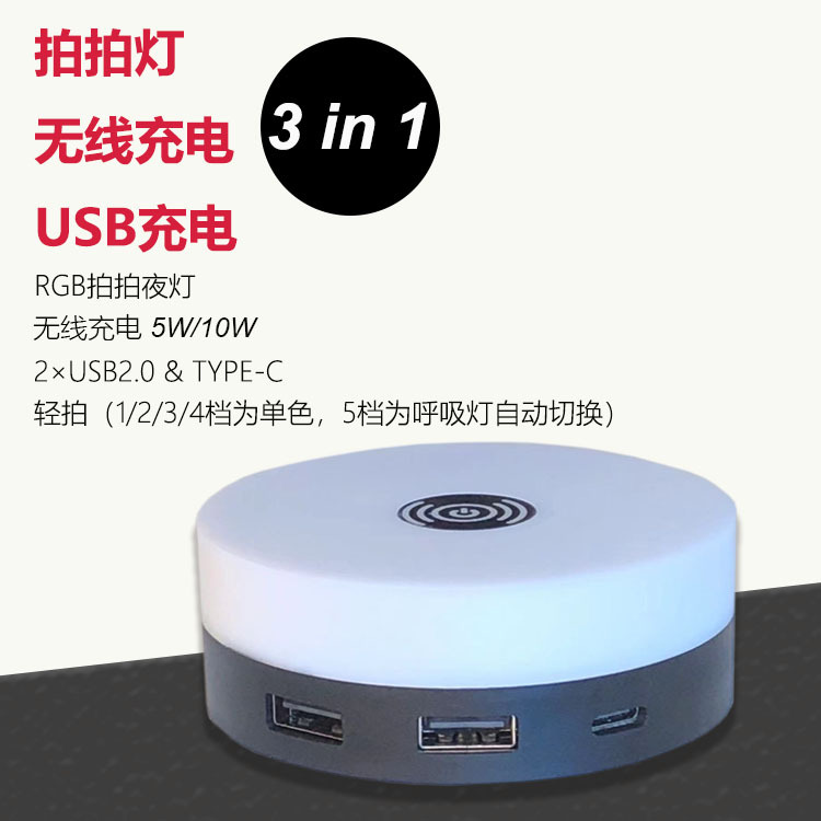 RGB 무선 충전 다채로운 분위기 침대 옆 램프 침실 수유 창조적 인 선물 LED 팻 야간 조명 크로스 보더