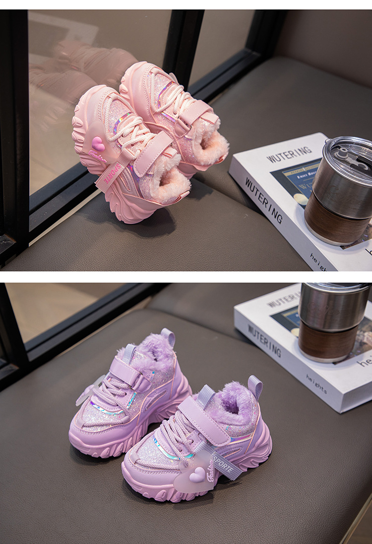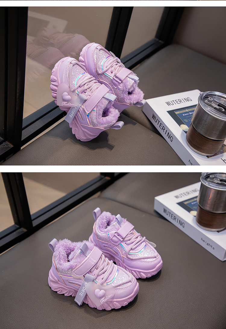 어린이 운동화, 두꺼운 여아용 면화 신발, 벨벳 안감 여아용 아빠 신발, 따뜻하고 미끄럼 방지 겨울용 두꺼운 면화 신발스토어 가기