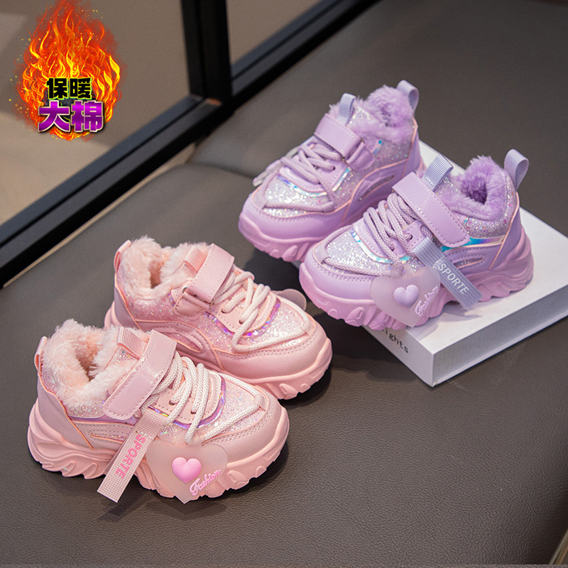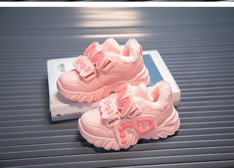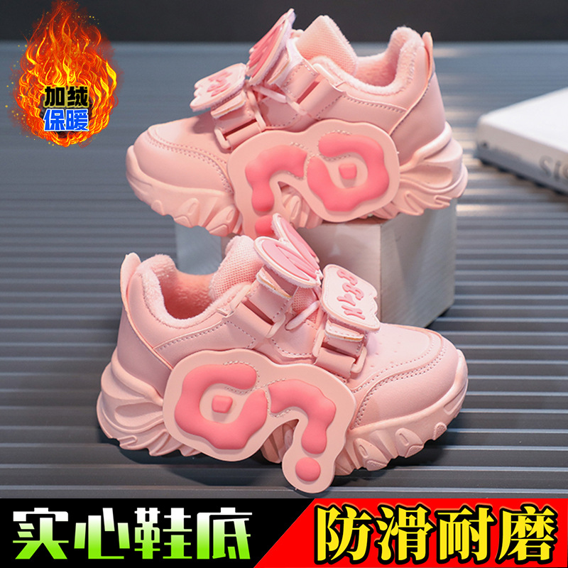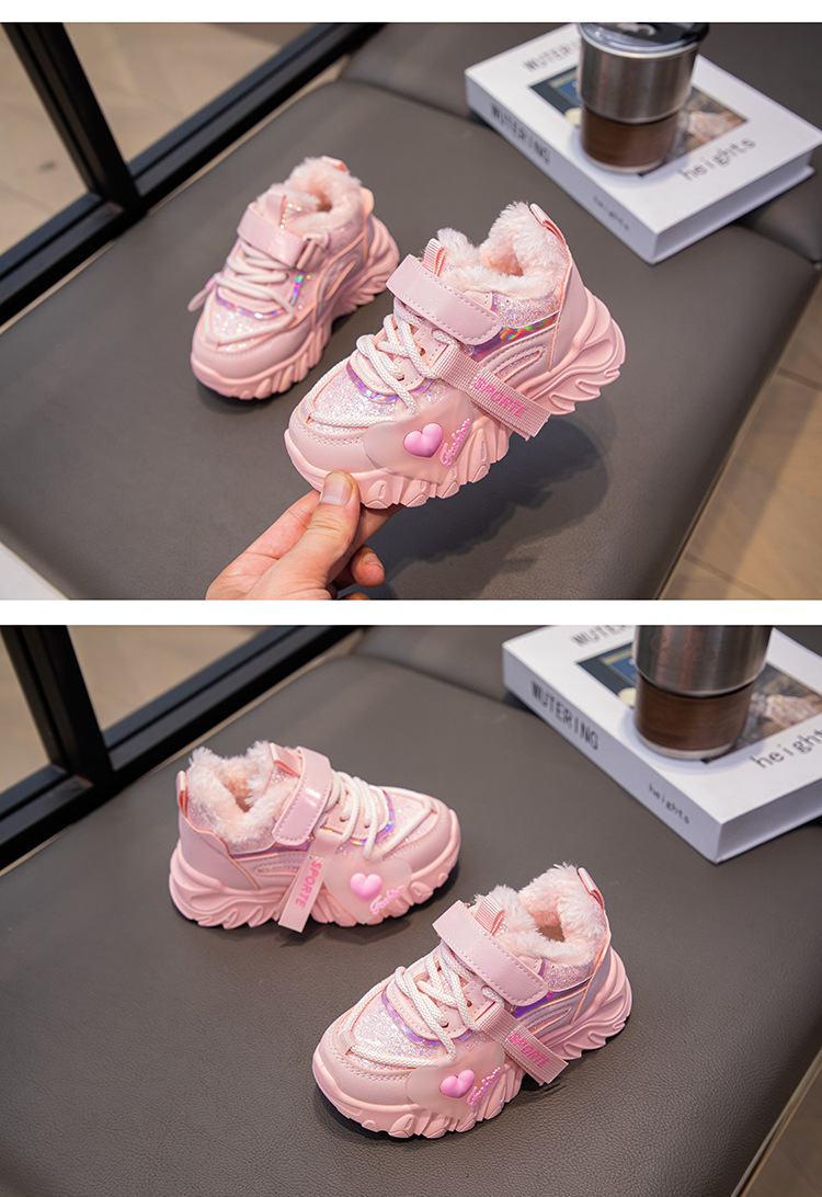 어린이 운동화, 두꺼운 여아용 면화 신발, 벨벳 안감 여아용 아빠 신발, 따뜻하고 미끄럼 방지 겨울용 두꺼운 면화 신발