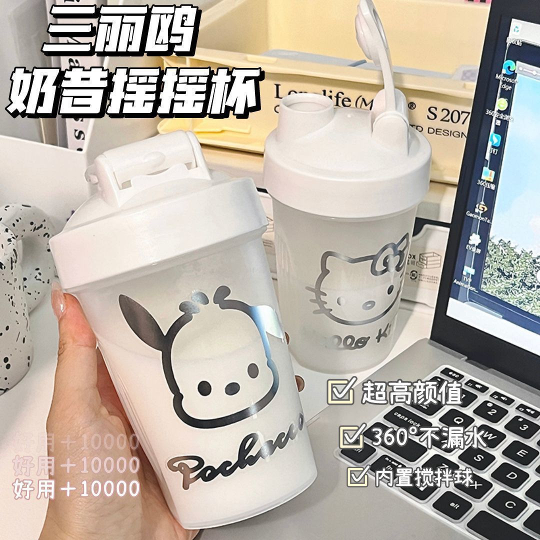 산리오 스포츠 컵 소녀 높은 모습의 피트니스 쉐이크 컵 스케일 학생 플라스틱 컵 귀여운 휴대용