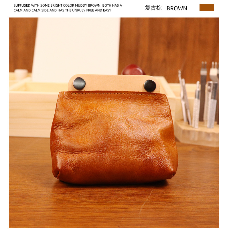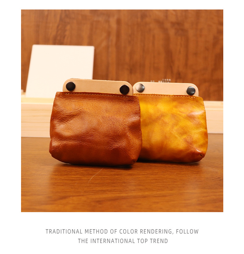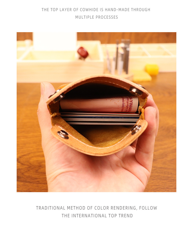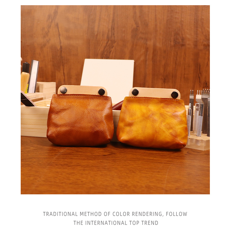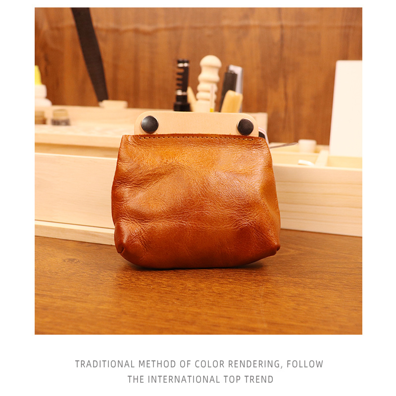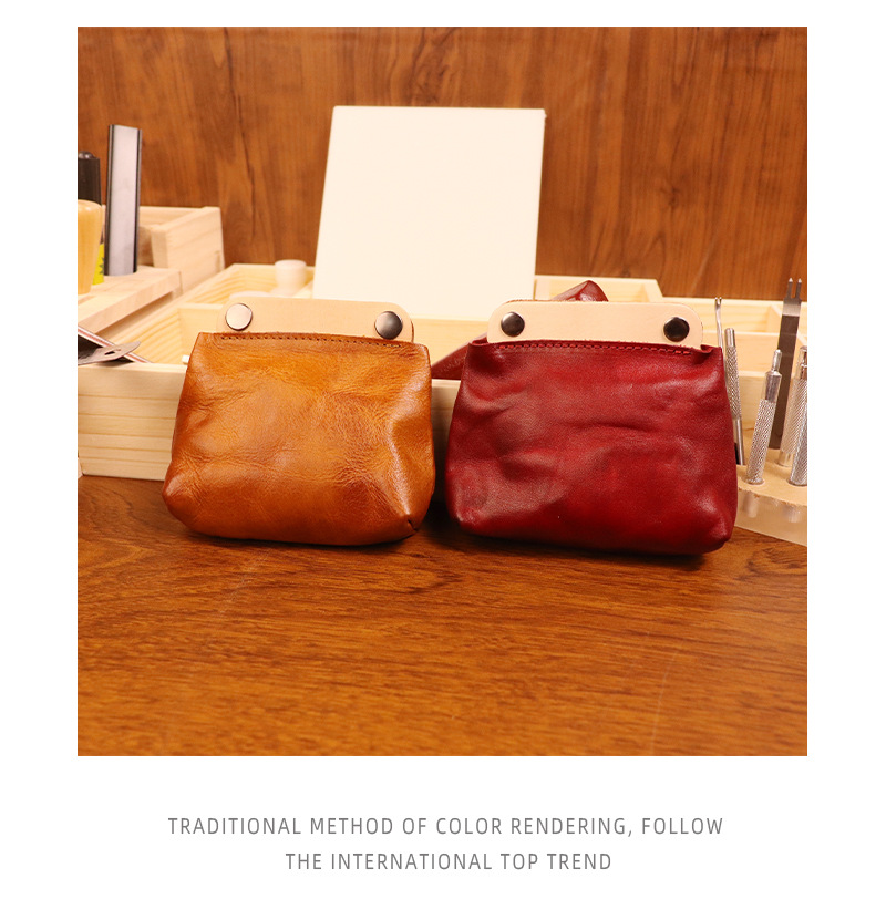 야채 무두질 가죽 일본식 수제 오래 된 동전 지갑 남여 공용 복고풍 컬러 매칭 소가죽 지갑 헤드셋 카드 가방