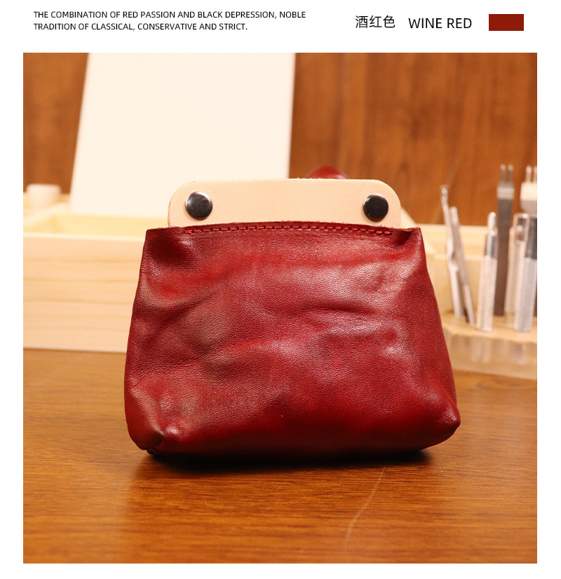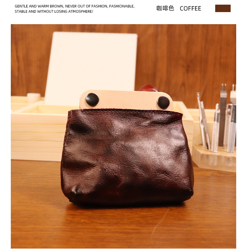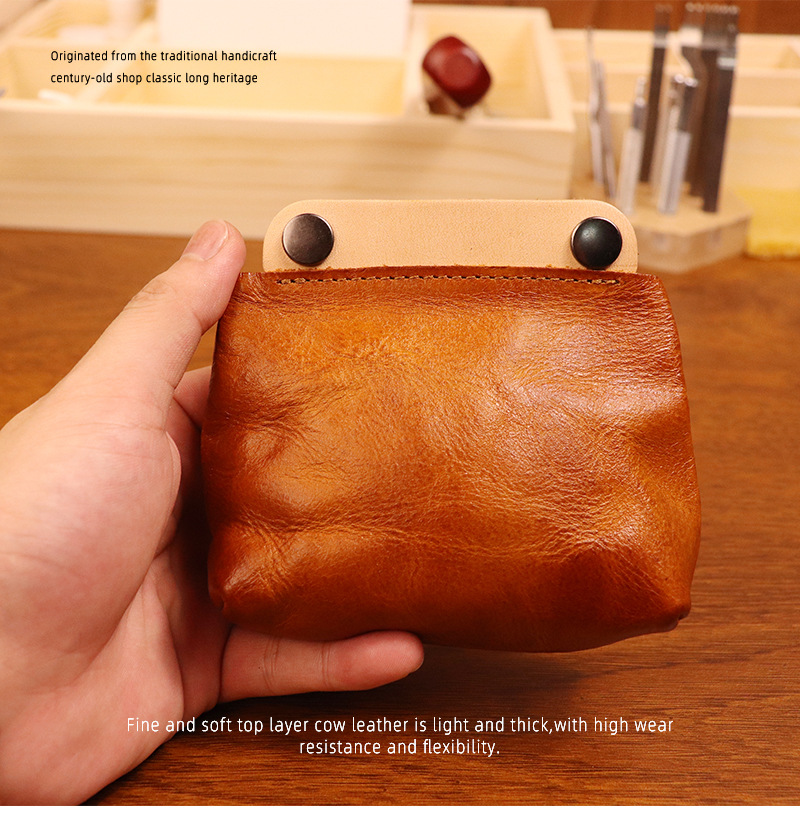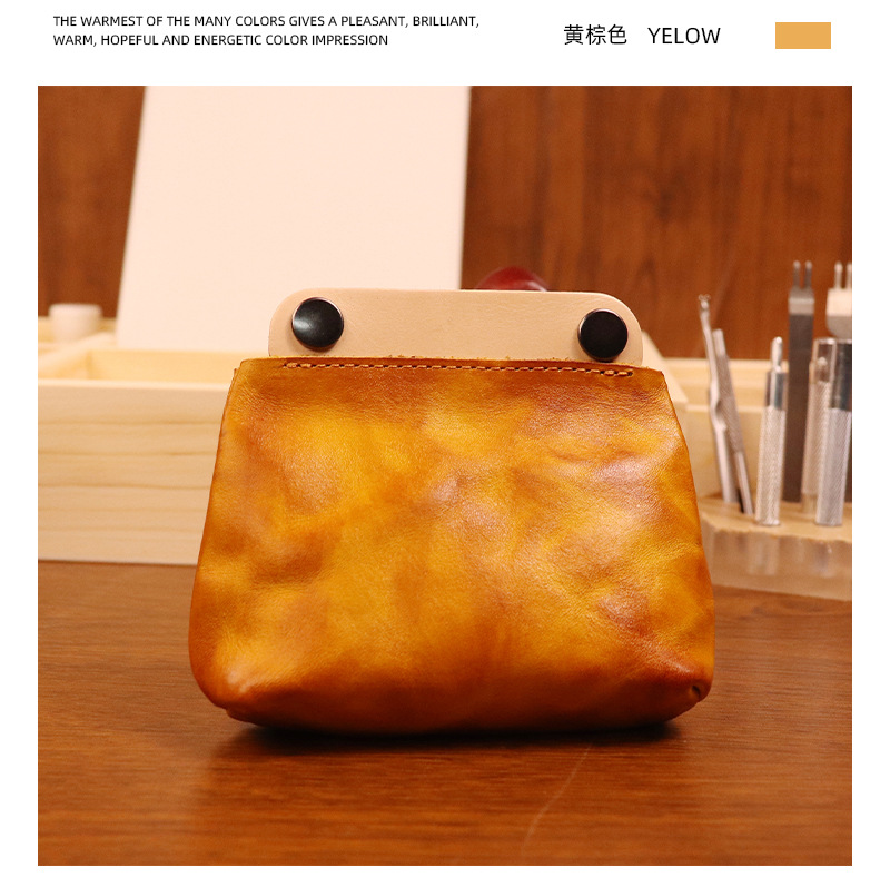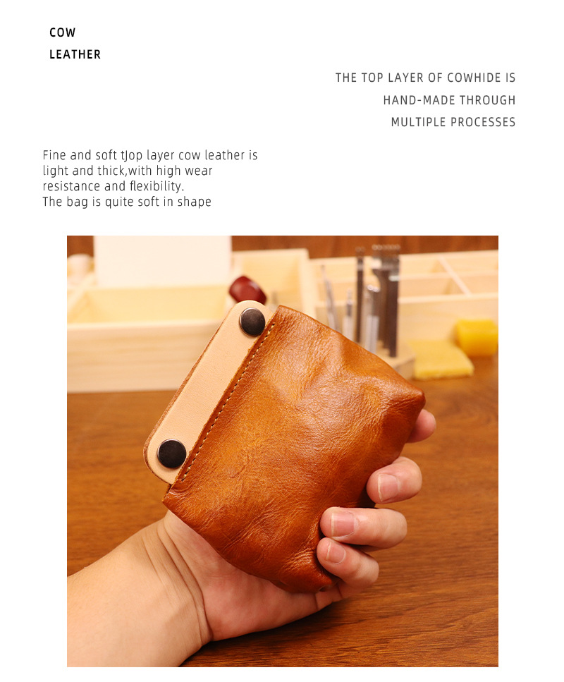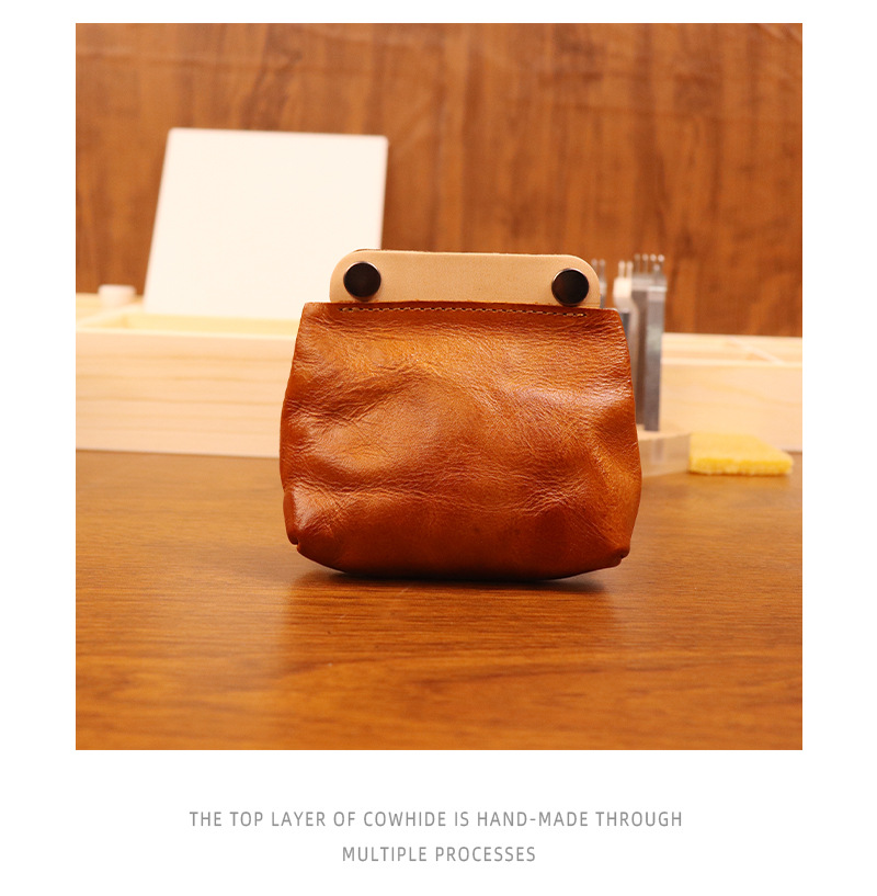 야채 무두질 가죽 일본식 수제 오래 된 동전 지갑 남여 공용 복고풍 컬러 매칭 소가죽 지갑 헤드셋 카드 가방