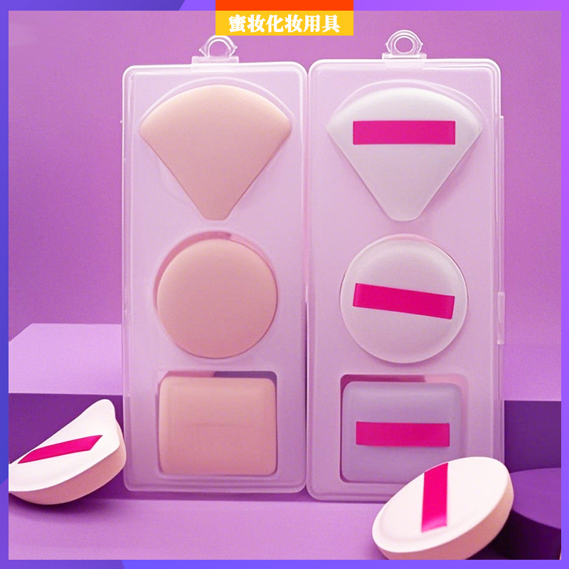 블랙 파인애플 에어쿠션 퍼프, 파우더가 잘 안 묻는 탄력있는 에어쿠션 메이크업 에그, 메이크업 에그 세트, 마시멜로 퍼프