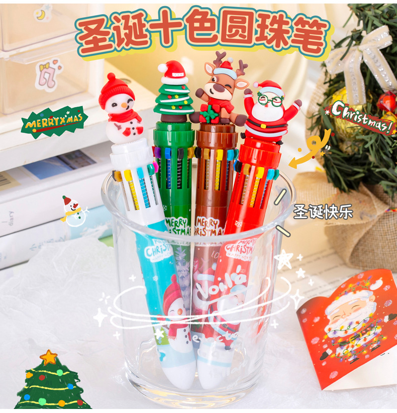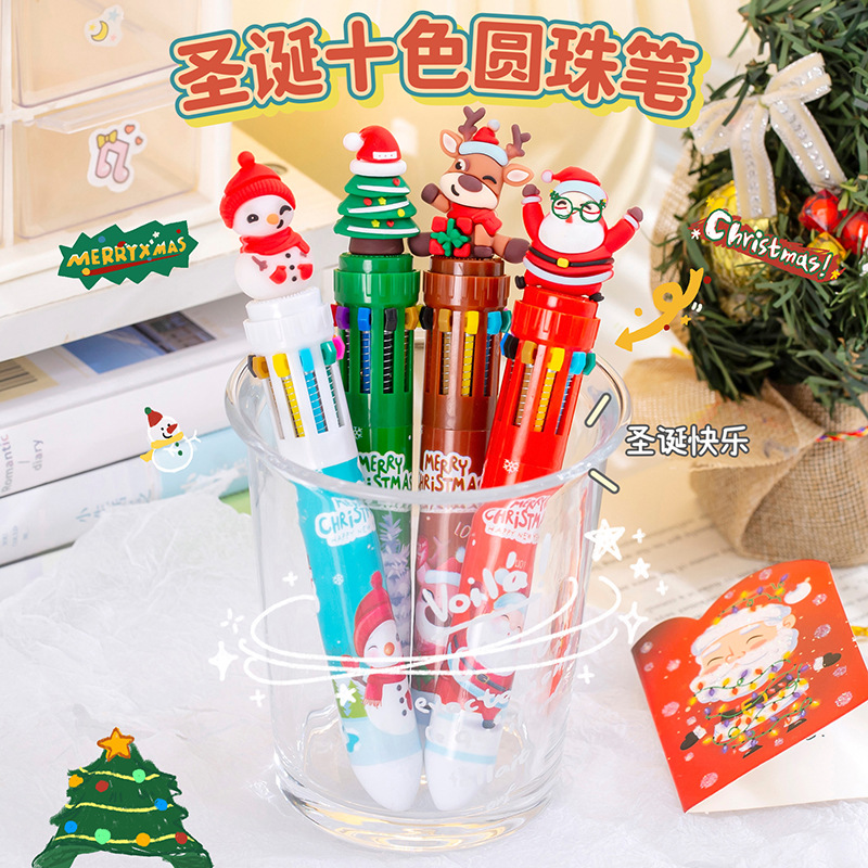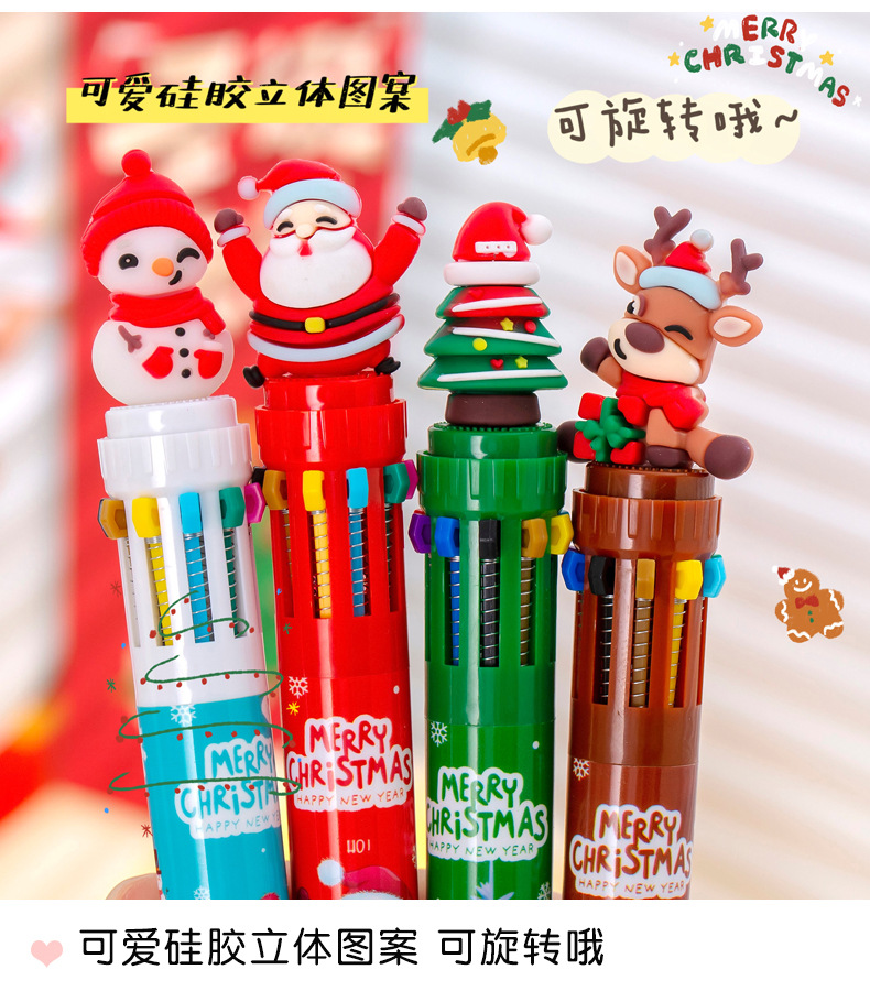 만화 크리스마스 10 색 볼펜 멀티 컬러 1 색 펜 초등학교 선물 프레스 서명 볼펜 도매