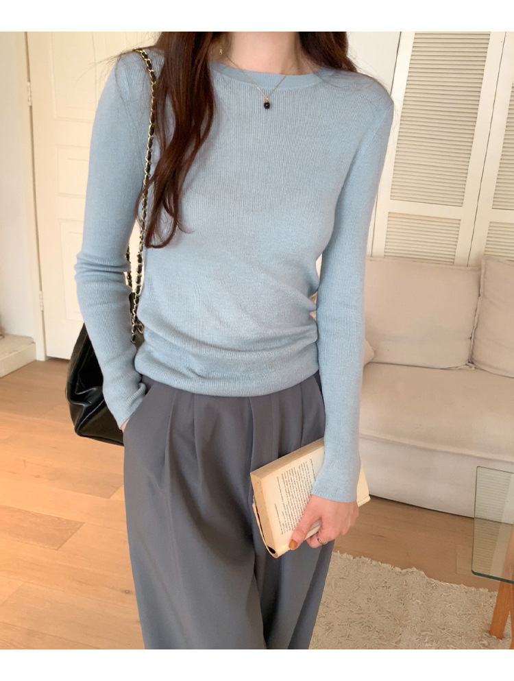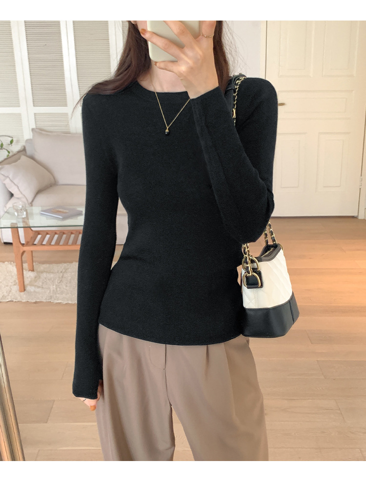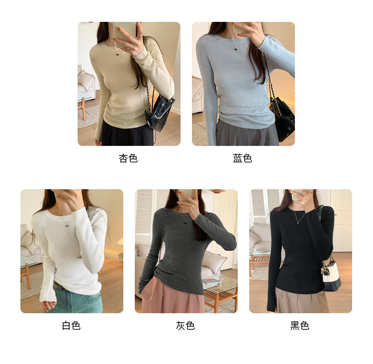 루스 가을과 겨울 라운드 넥 슬리밍 편안한 통기성 슬림핏 모든 매치 솔리드 컬러 브러시 니트 베이스 셔츠 긴팔 여성