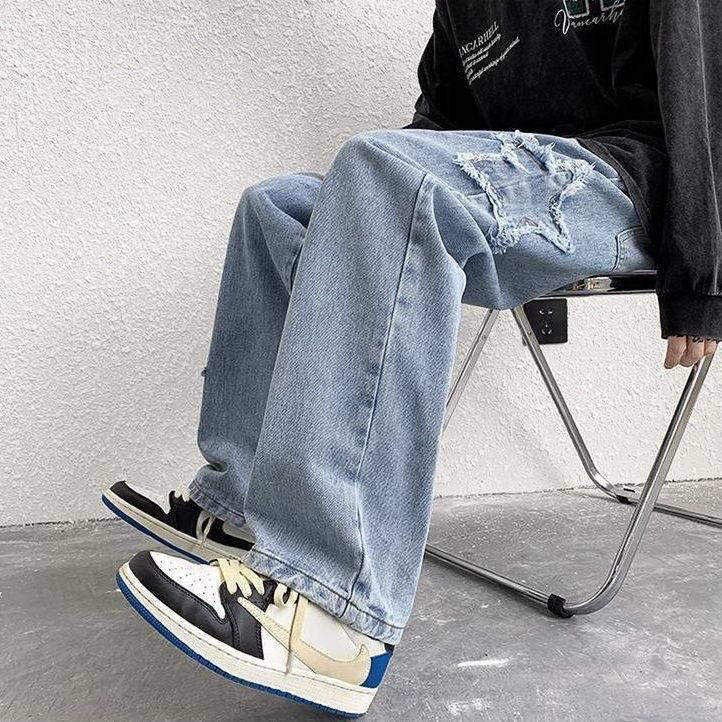 아메리칸 스타 진 남성용 느슨한 스트레이트 바이브 아메리칸 스트리트 팬츠 와이드 레그 플로어 팬츠 남성용 헤어스토어 가기